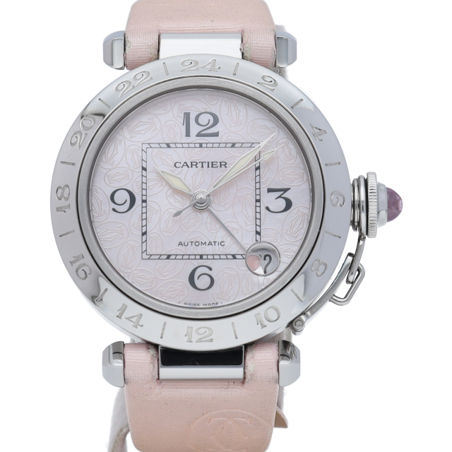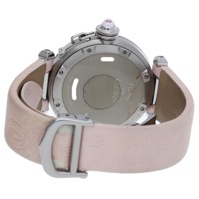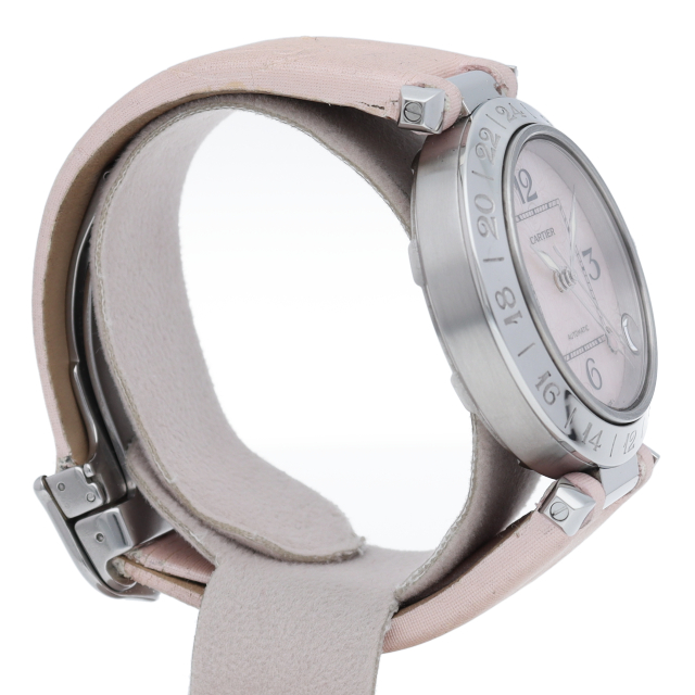 2004年のクリスマスに限定販売されたパシャC メリディアン。ピンクシェルの文字盤と革ベルトの特別な仕様により、見なれたパシャでも全く雰囲気が異なっております。