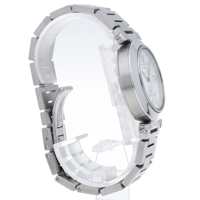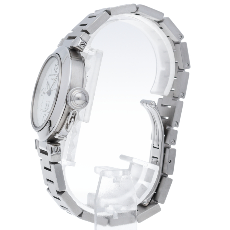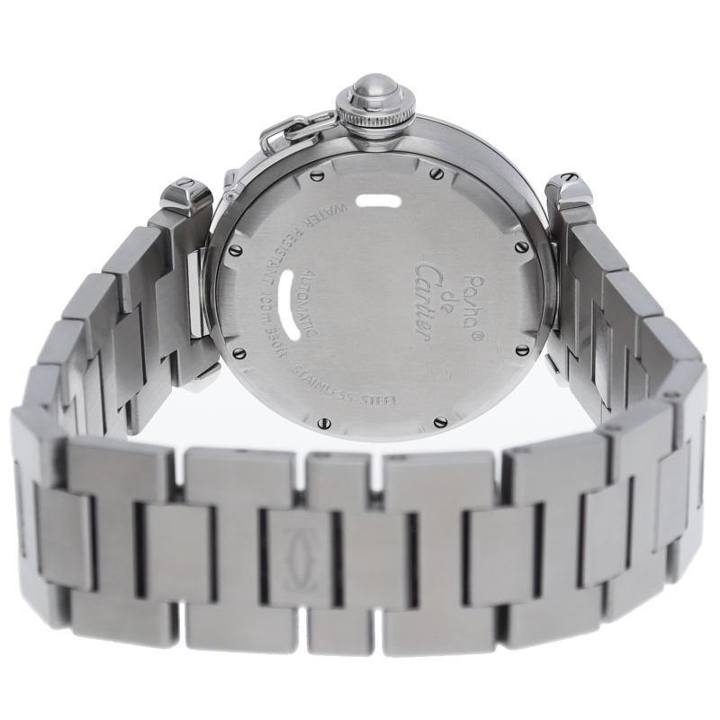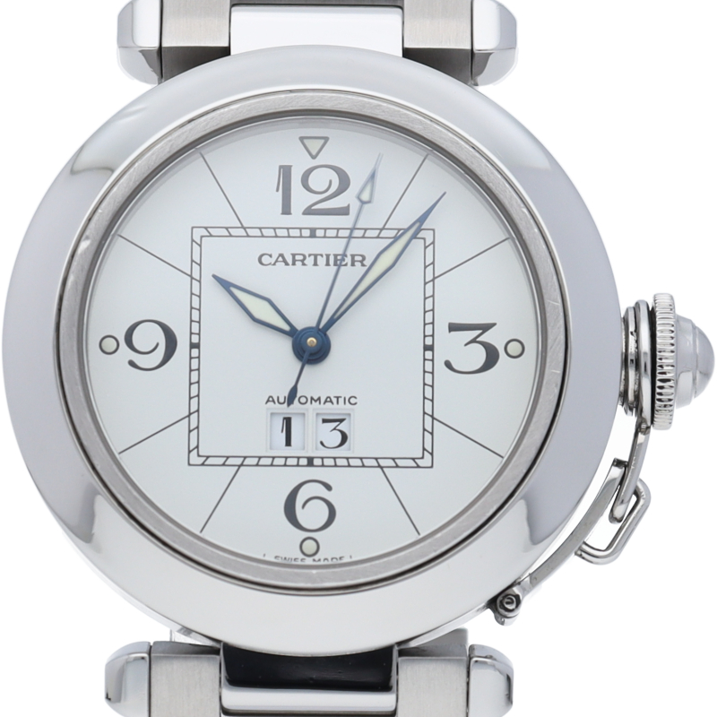 カルティエの人気「パシャC」シリーズ。大きい日付表示が特徴的なビッグデイト。視認性も良くどんなシーンにも活用できるラウンドケースがオシャレな1本。