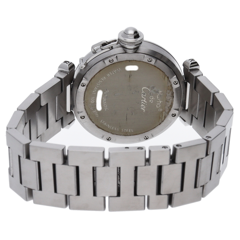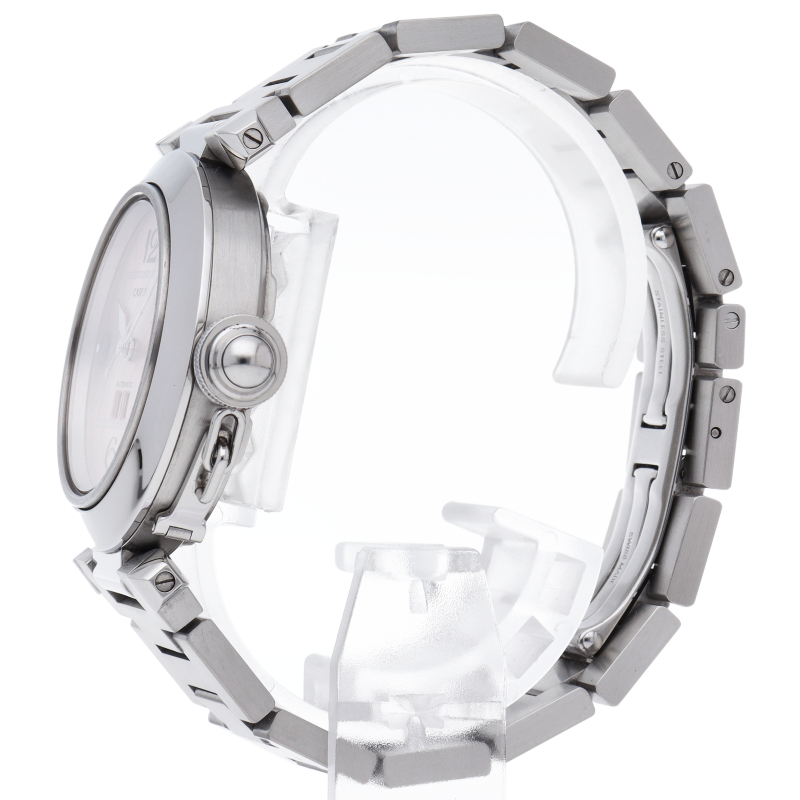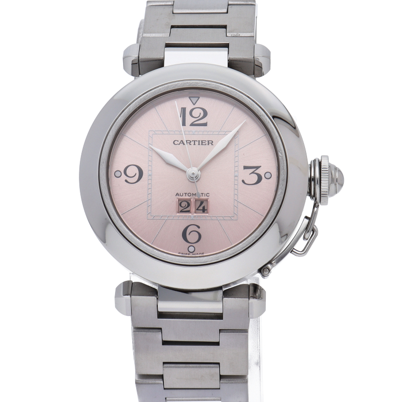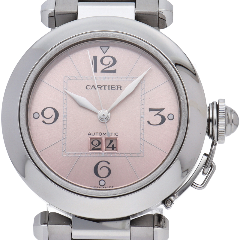 カルティエの人気「パシャC」シリーズ。大きい日付表示が特徴的なビッグデイト。視認性も良くどんなシーンにも活用できるラウンドケースがオシャレな1本。