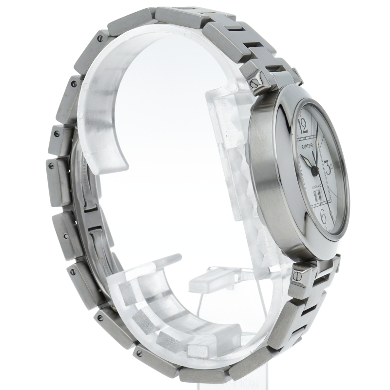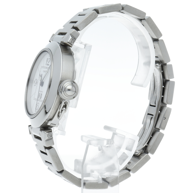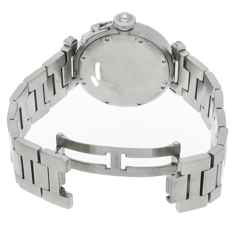 カルティエの人気「パシャC」シリーズ。大きい日付表示が特徴的なビッグデイト。視認性も良くどんなシーンにも活用できるラウンドケースがオシャレな1本。