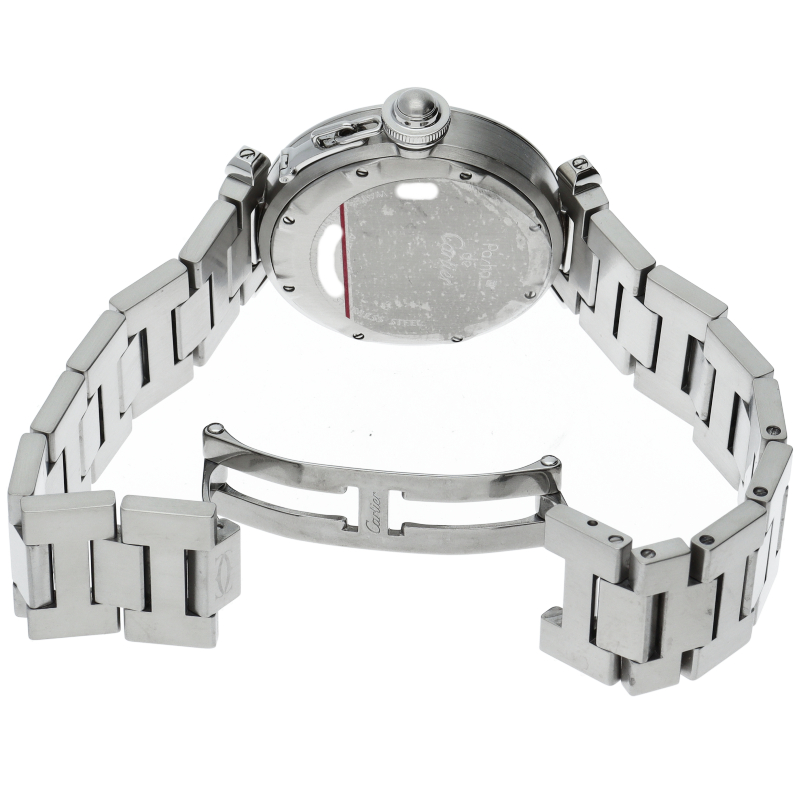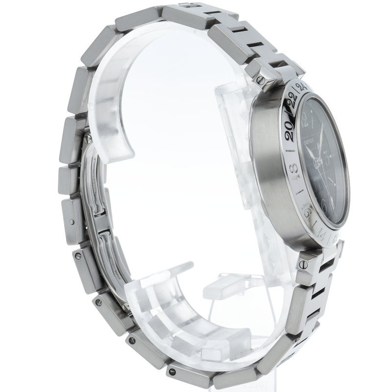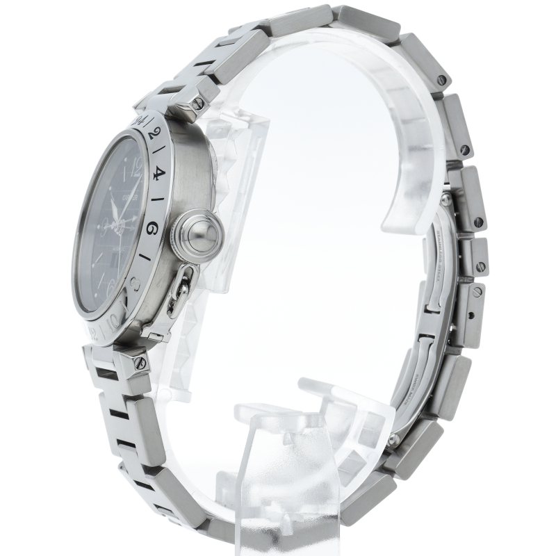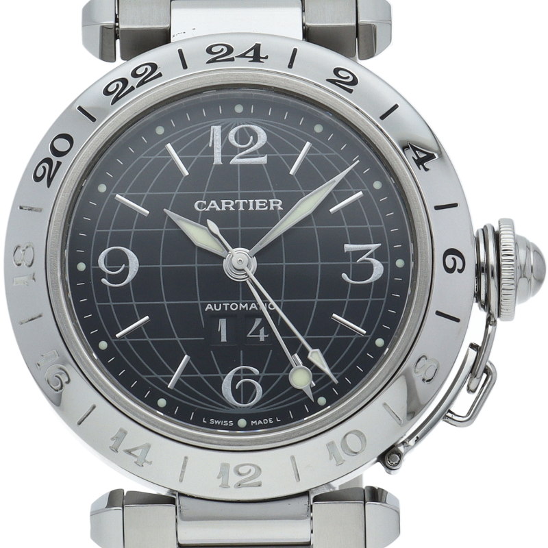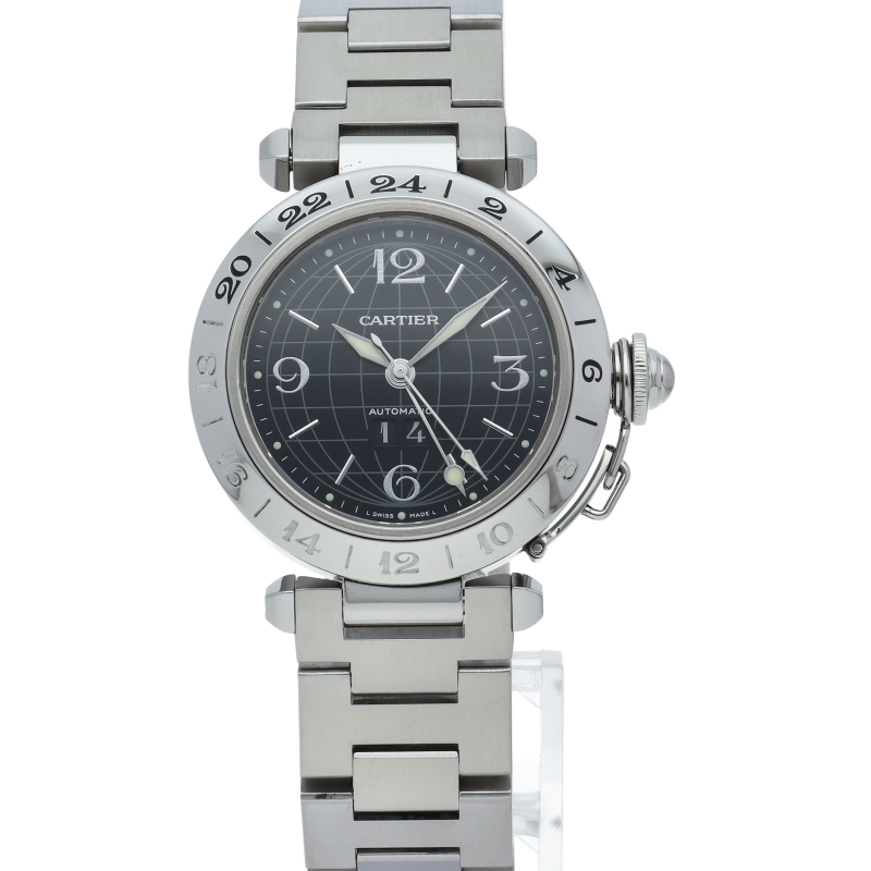 カルティエの人気「パシャC」シリーズ。大きい日付表示が特徴的なビッグデイトにGMT機能が搭載されています。スタイルを選ばずに使用できるオシャレな1本です。