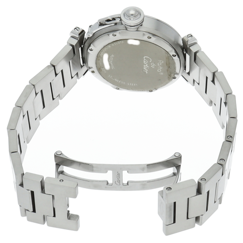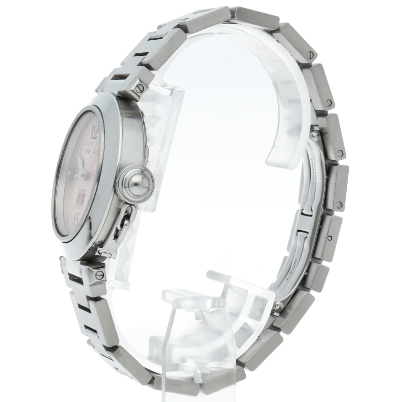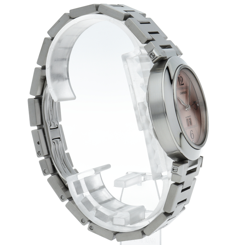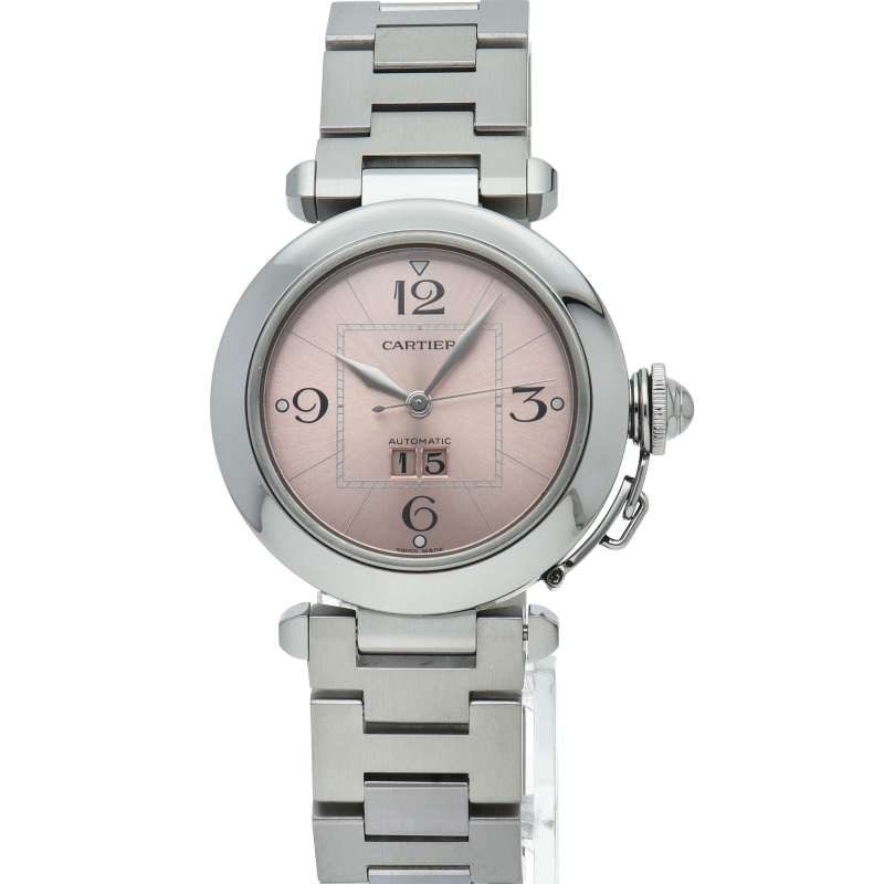 カルティエの人気「パシャC」シリーズ。大きい日付表示が特徴的なビッグデイト。視認性も良くどんなシーンにも活用できるラウンドケースがオシャレな1本。