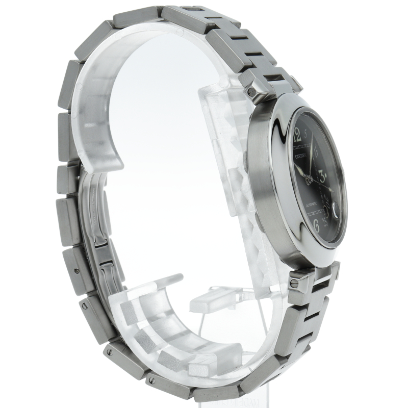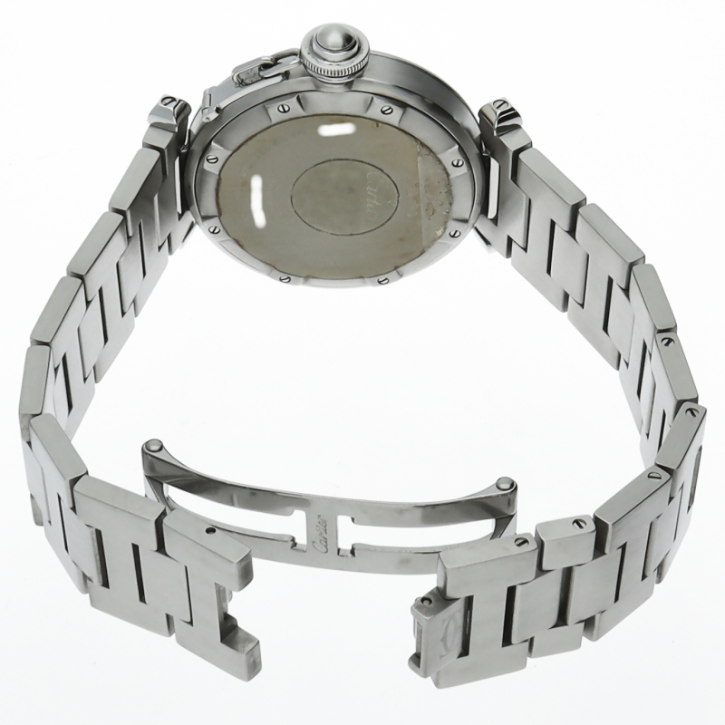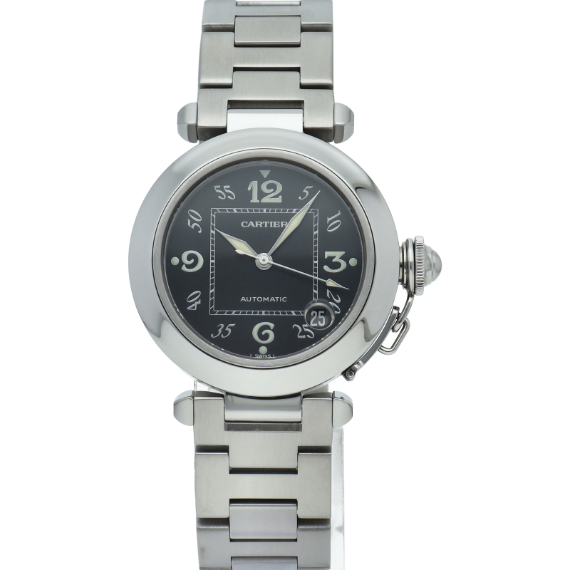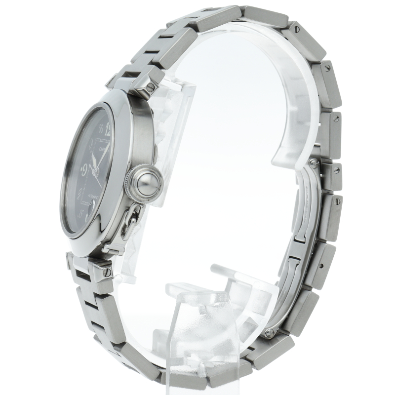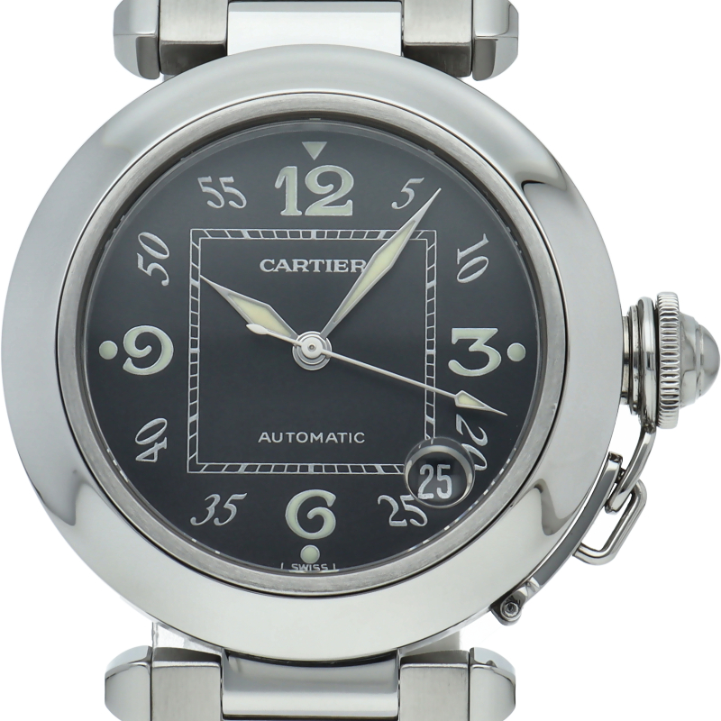 カルティエの人気パシャCシリーズ。4時と5時の間にデイト表示機能が付いた実用性のある1本。どんなシーンにも活用できるラウンドケースがオシャレです。