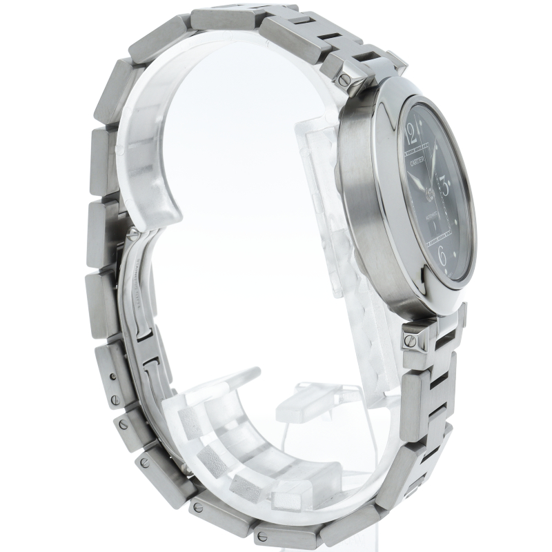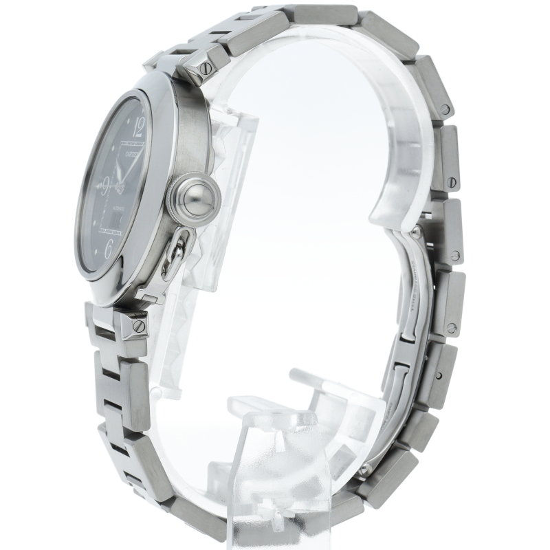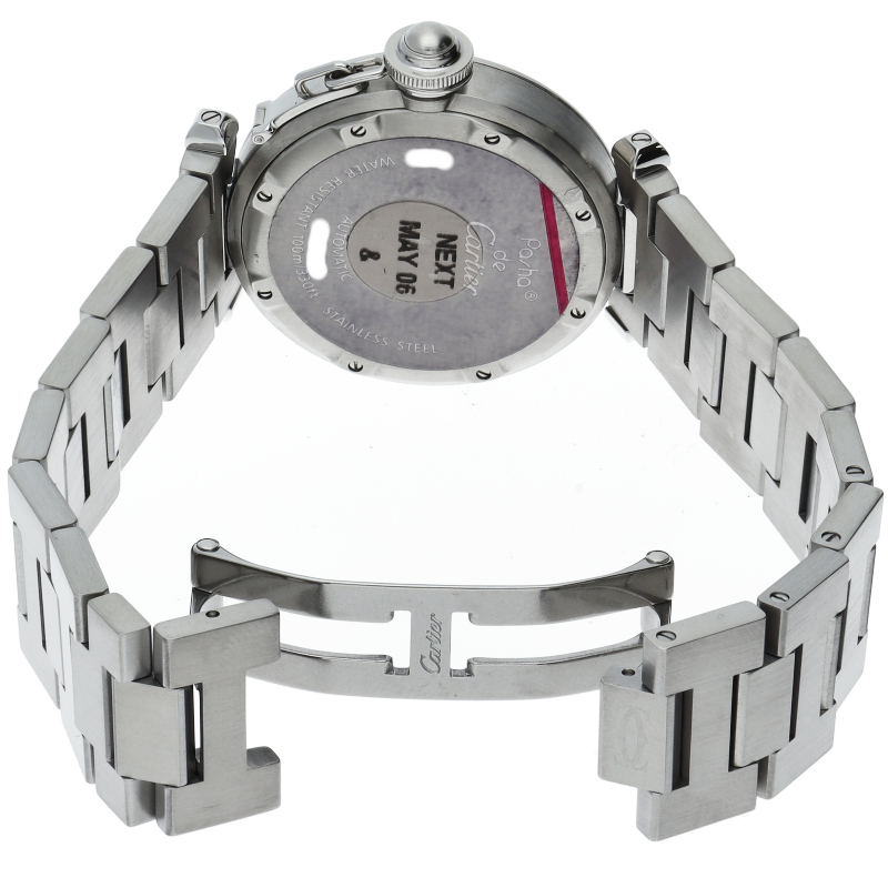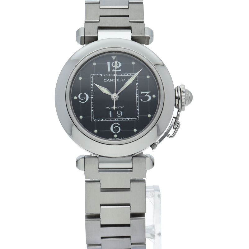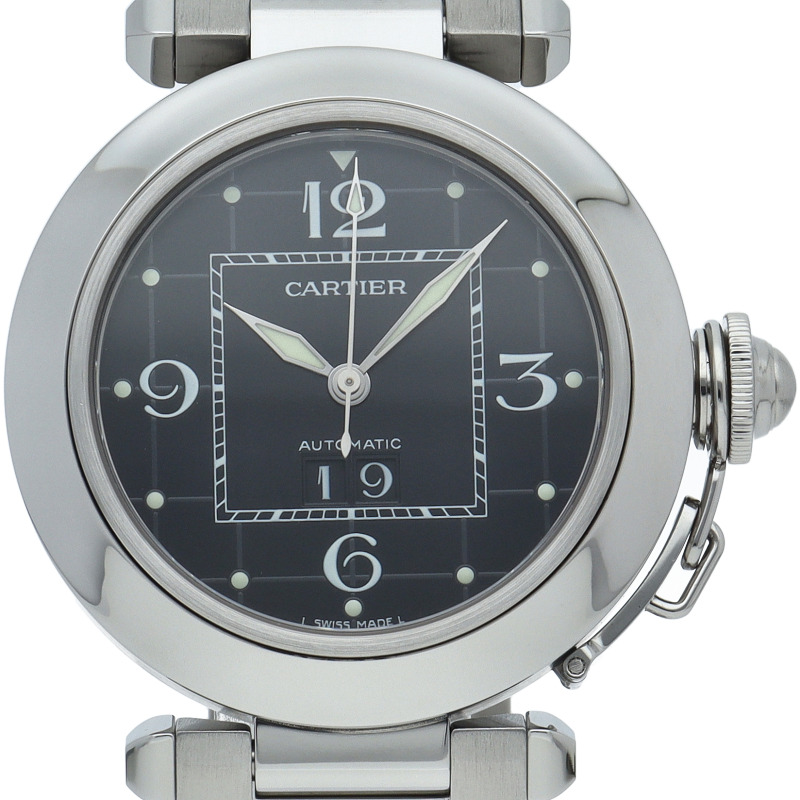 カルティエの人気「パシャC」シリーズ。大きい日付表示が特徴的なビッグデイト。視認性も良くどんなシーンにも活用できるラウンドケースがオシャレな1本。