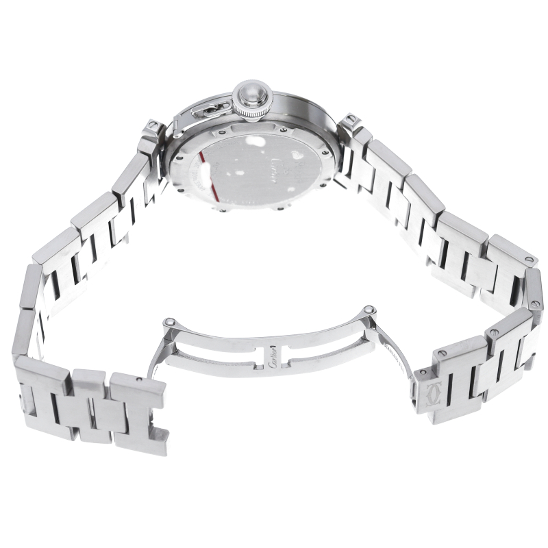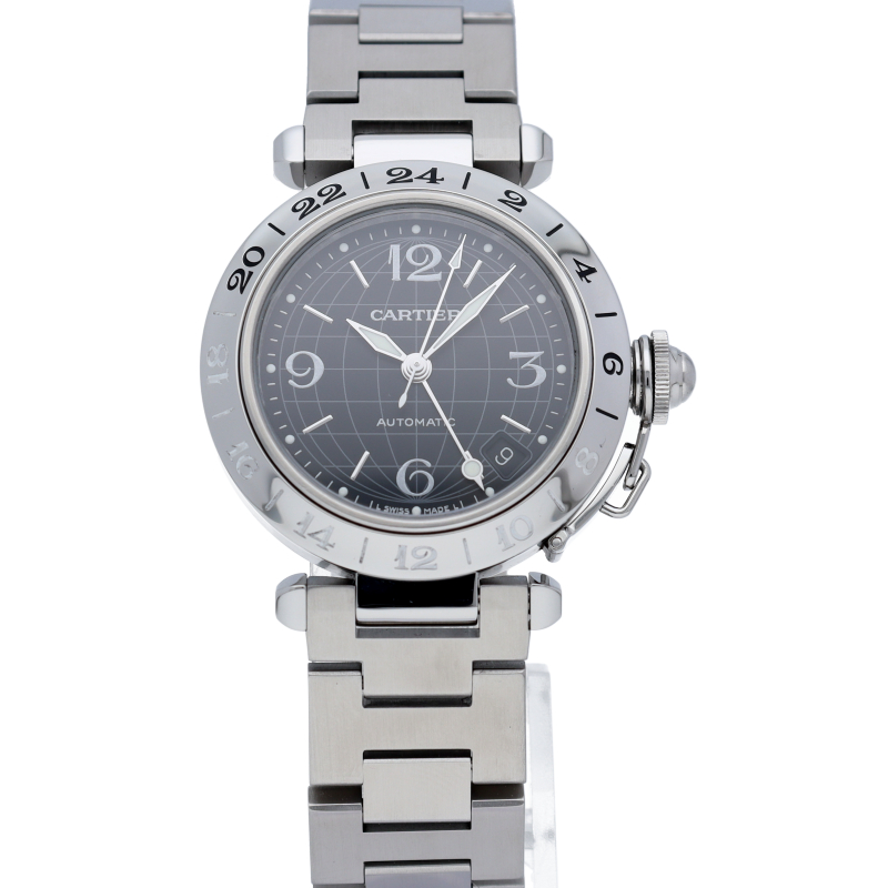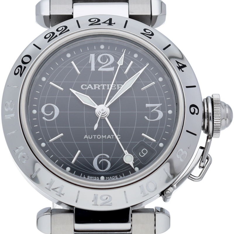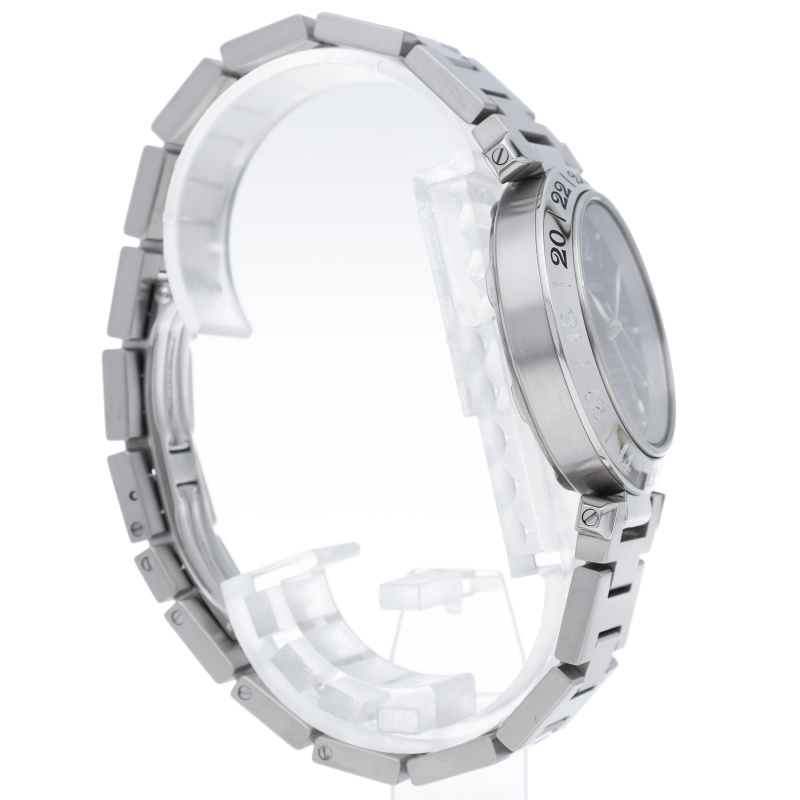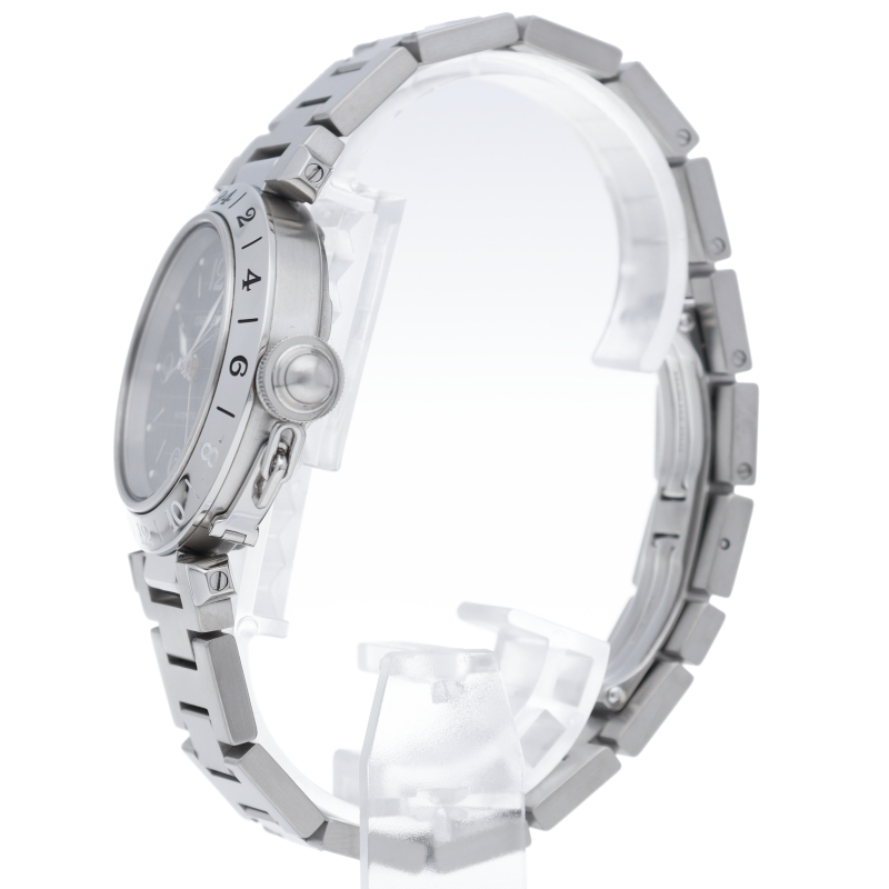カルティエの人気「パシャC」シリーズ。大きい日付表示が特徴的なビッグデイトにGMT機能が搭載されています。スタイルを選ばずに使用できるオシャレな1本です。