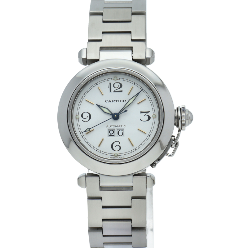 シンプルながらもエレガントで美しい「パシャC」。ビッグデイトと呼ばれる、日付が大きいタイプの時計で場所を選ばず活躍できるので人気の商品です。