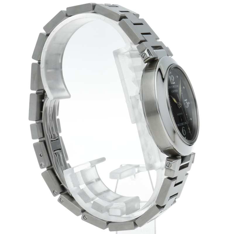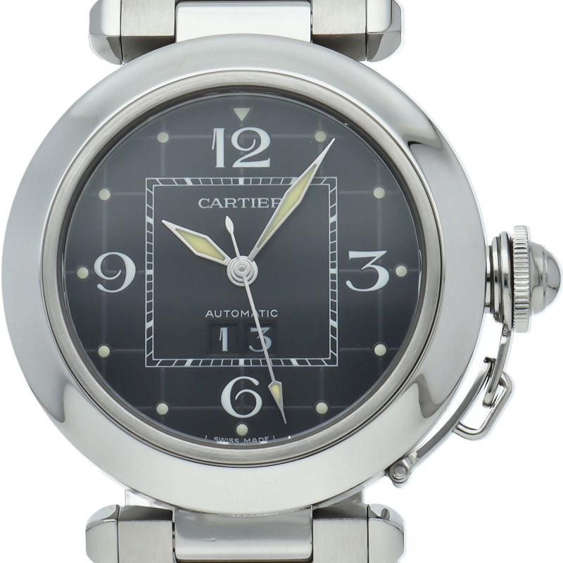 カルティエの人気「パシャC」シリーズ。大きい日付表示が特徴的なビッグデイト。視認性も良くどんなシーンにも活用できるラウンドケースがオシャレな1本。