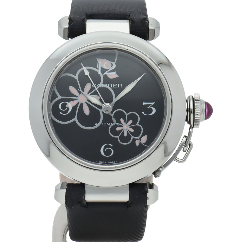 1943年にはパシャ(=太守)シリーズの原型となるラウンドケースの防水ウォッチが誕生し、2020年に【パシャ ドゥ カルティエ】として復活しました。こちらのモデルは2007年クリスマス限定として発表され華をモチーフにした文字盤のデザインは腕元を華やかに演出してくれます。