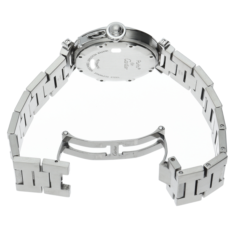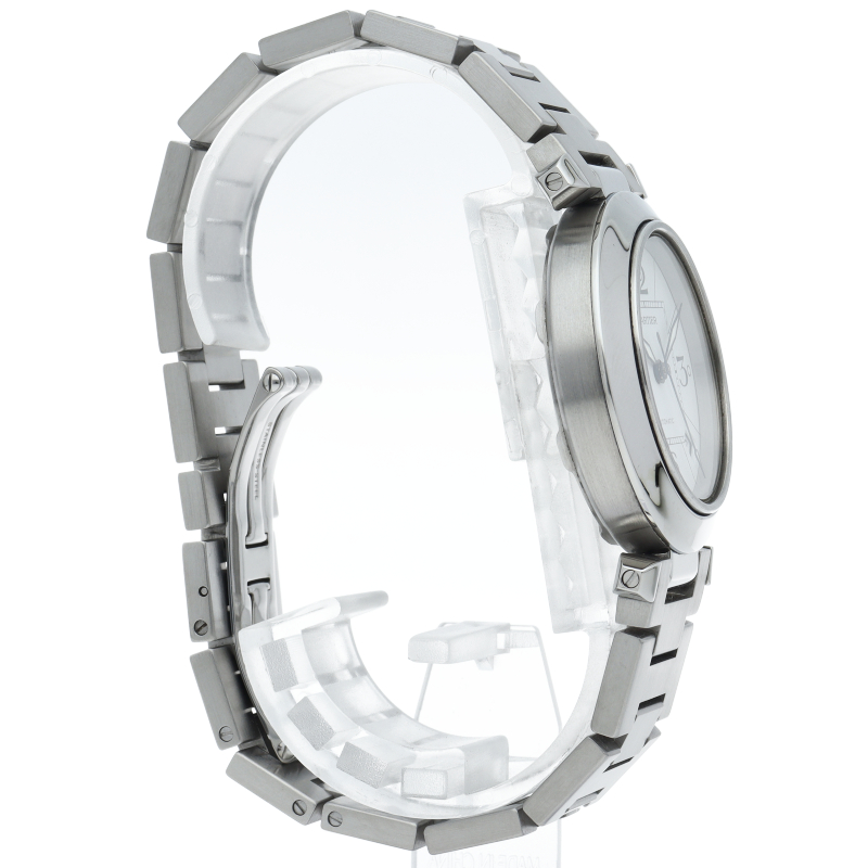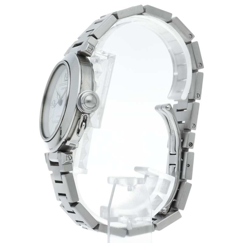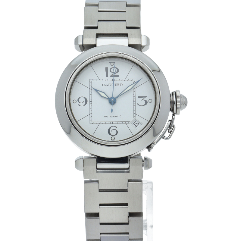 カルティエの人気パシャCシリーズ。4時と5時の間にデイト表示機能が付いた実用性のある1本。どんなシーンにも活用できるラウンドケースがオシャレです。