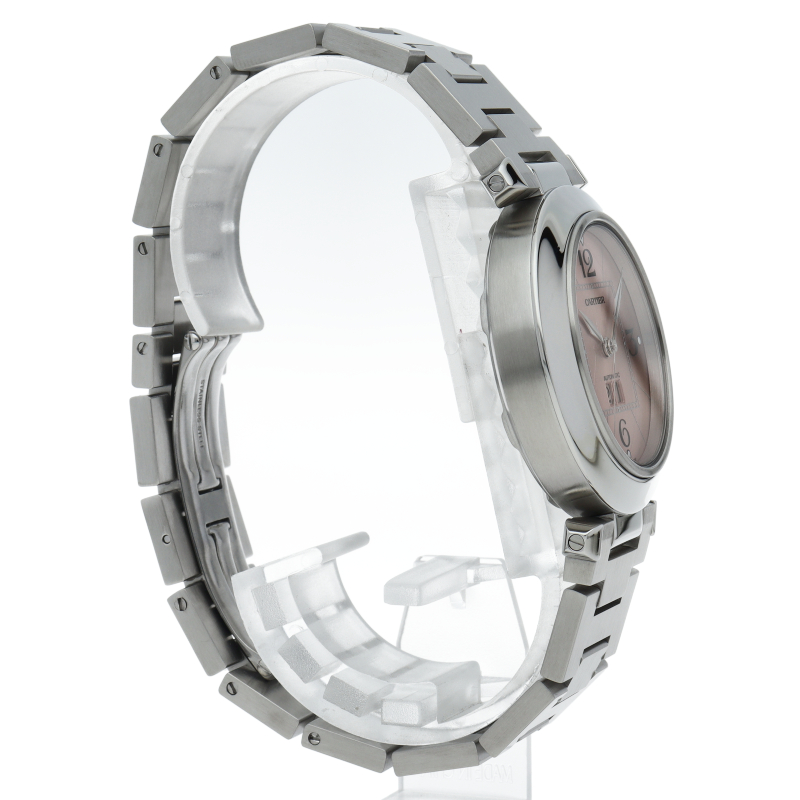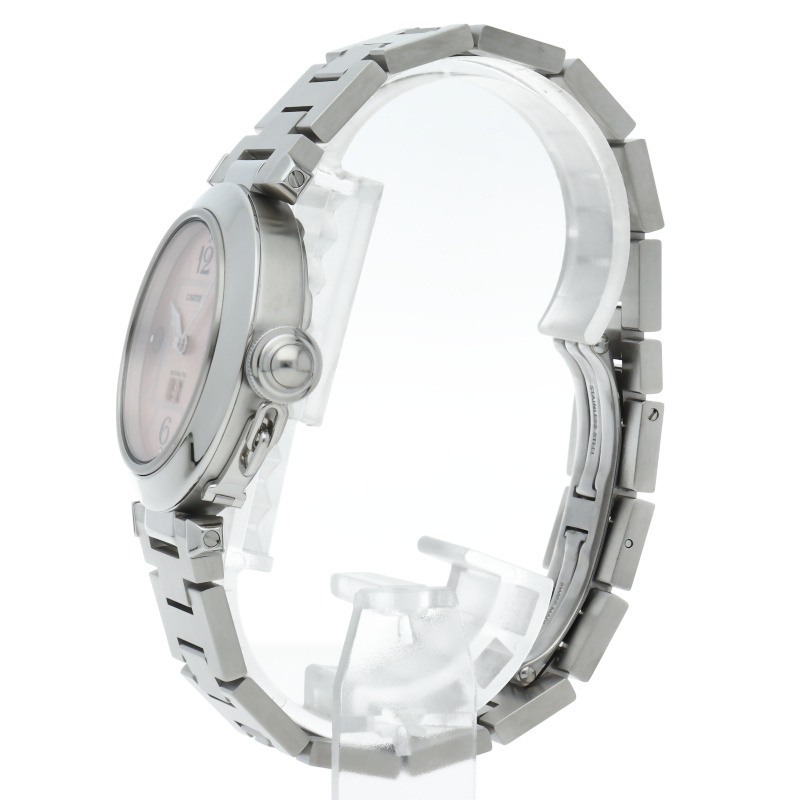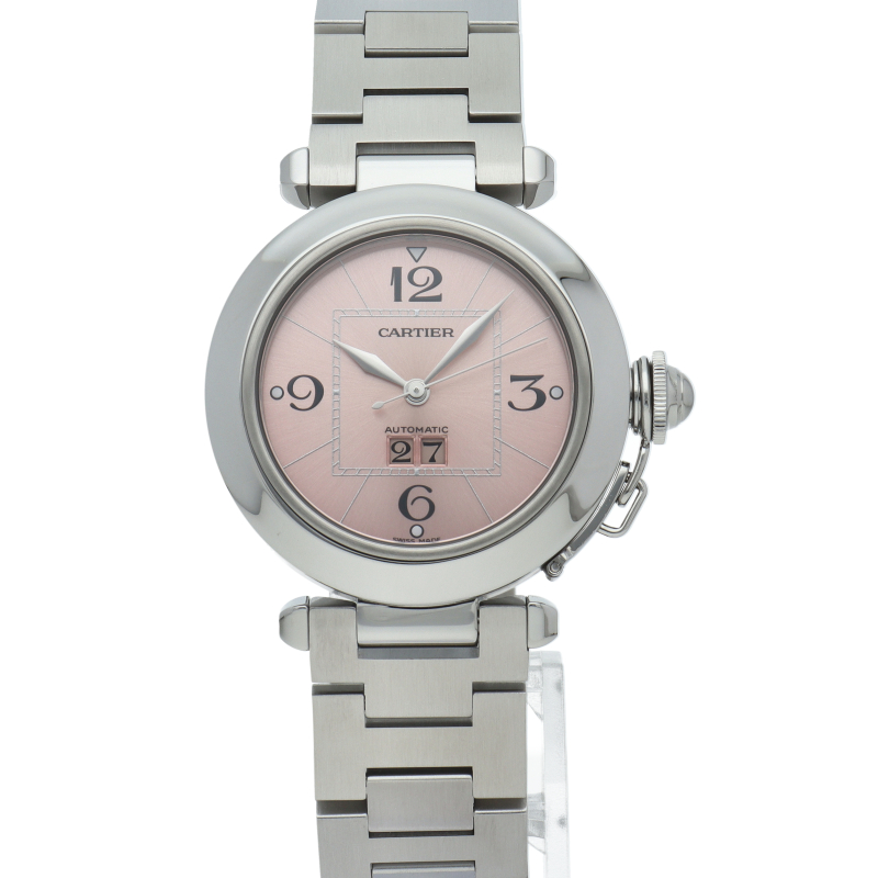カルティエの人気「パシャC」シリーズ。大きい日付表示が特徴的なビッグデイト。視認性も良くどんなシーンにも活用できるラウンドケースがオシャレな1本。