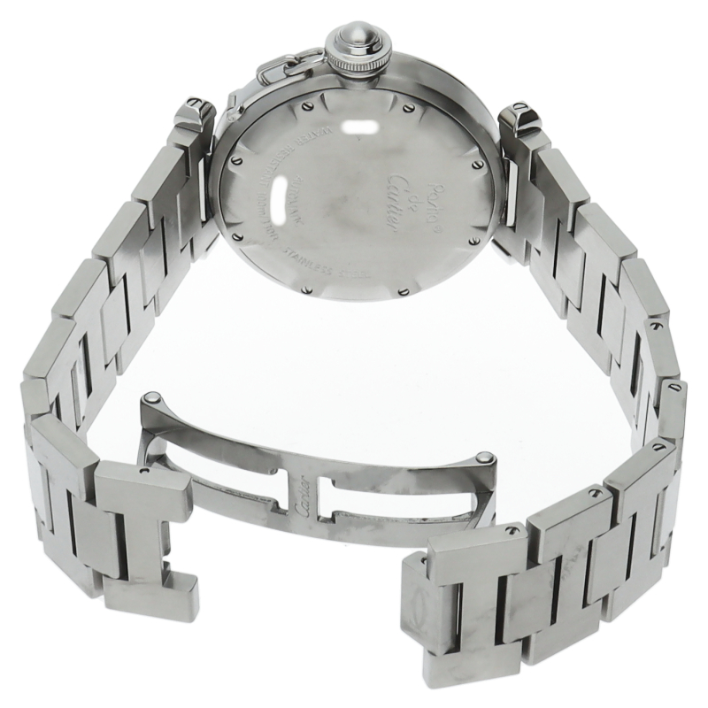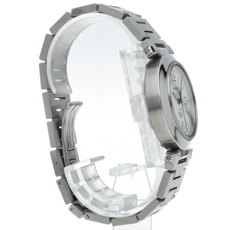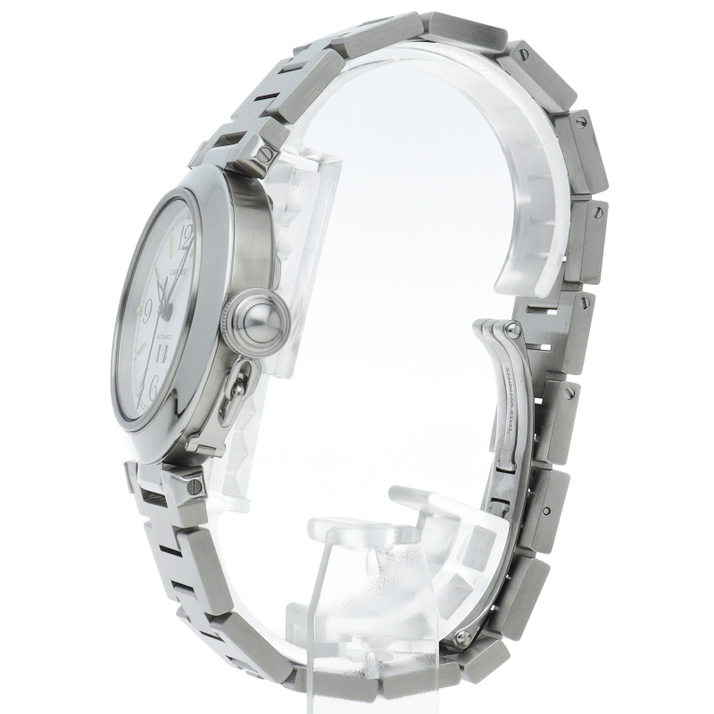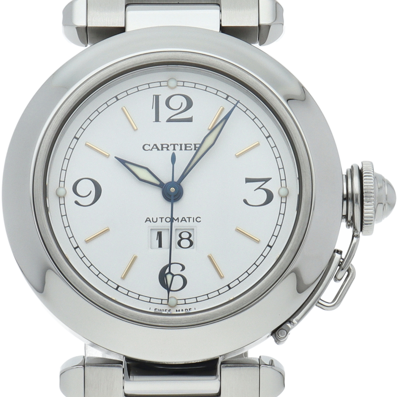 カルティエの人気「パシャC」シリーズ。大きい日付表示が特徴的なビッグデイト。視認性も良くどんなシーンにも活用できるラウンドケースがオシャレな1本。