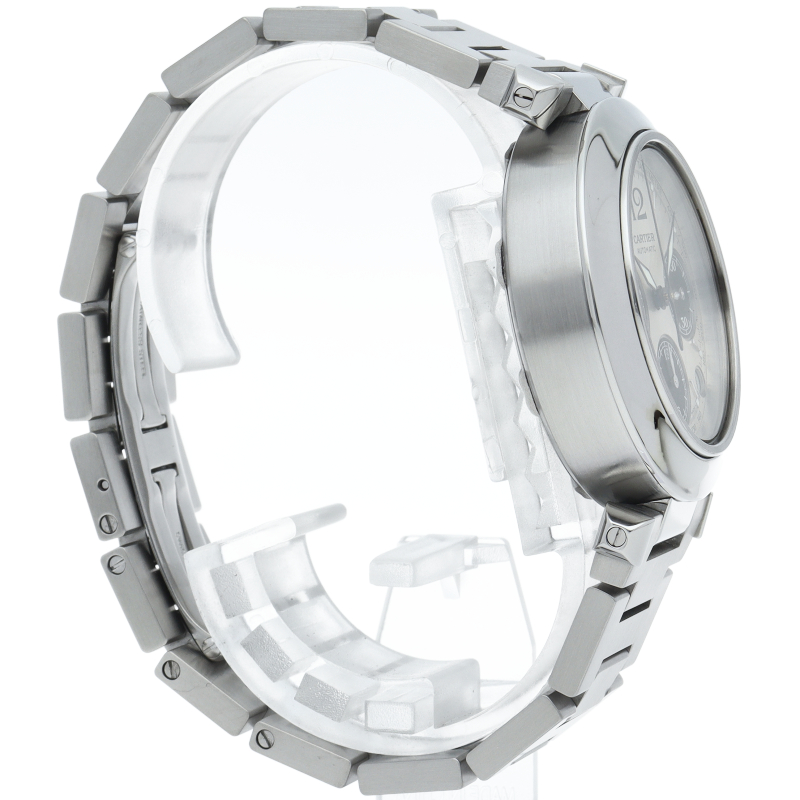 カルティエの人気パシャCシリーズ。4時と5時の間にデイト表示機能が付いた実用性のある1本。どんなシーンにも活用できるラウンドケースがオシャレです。