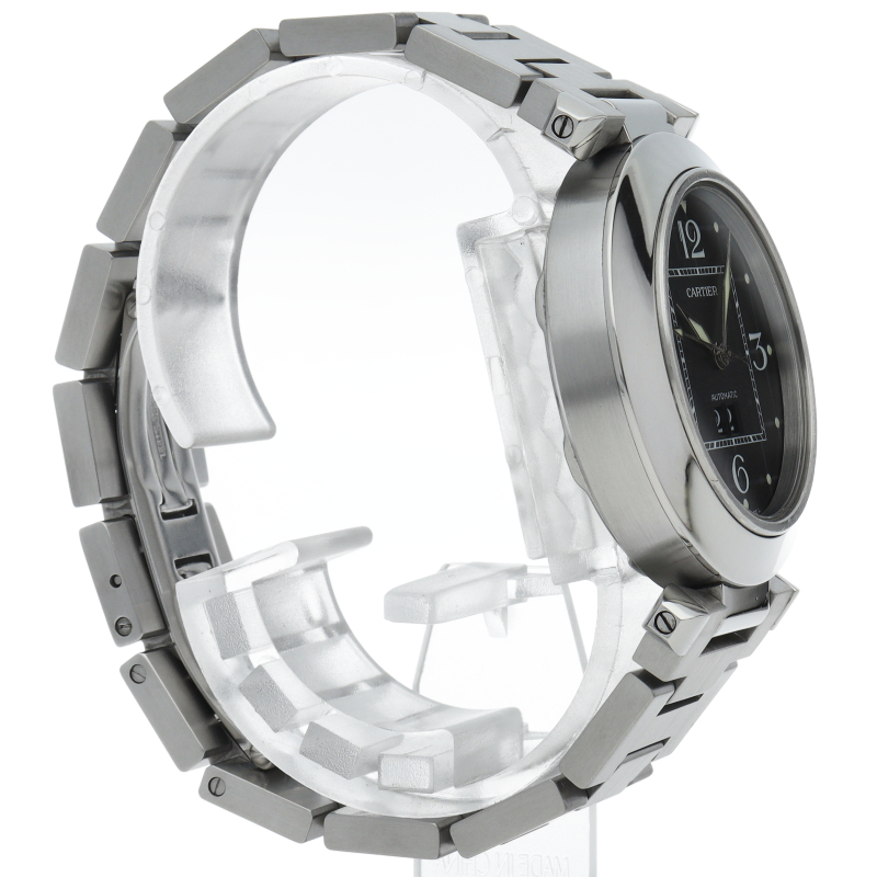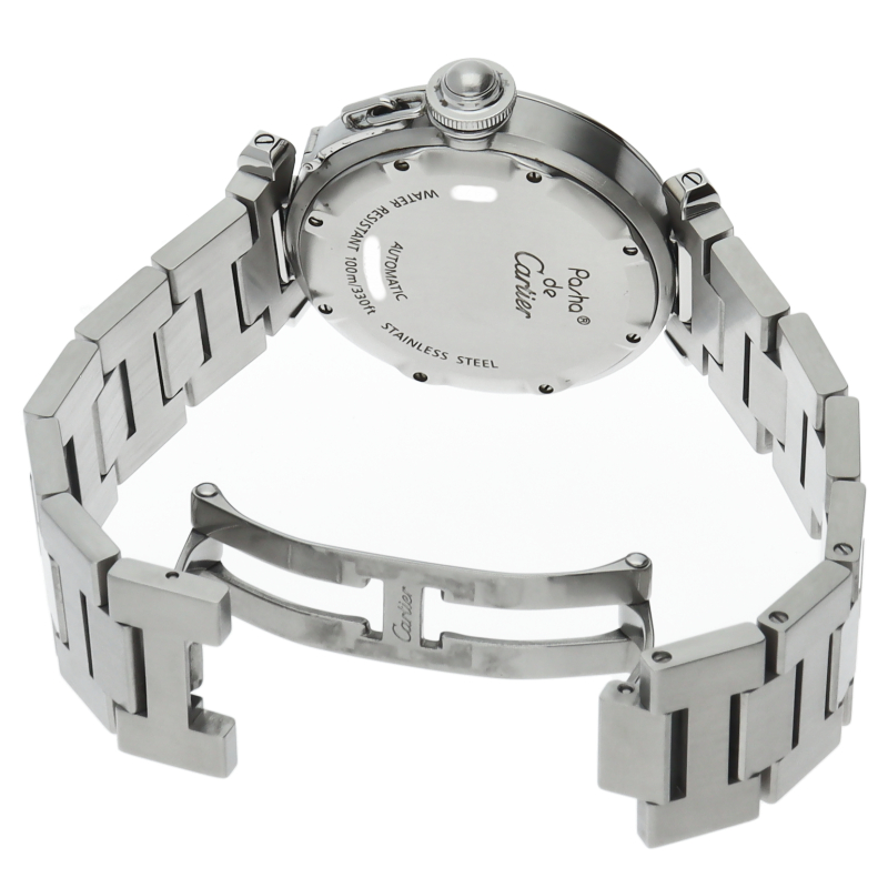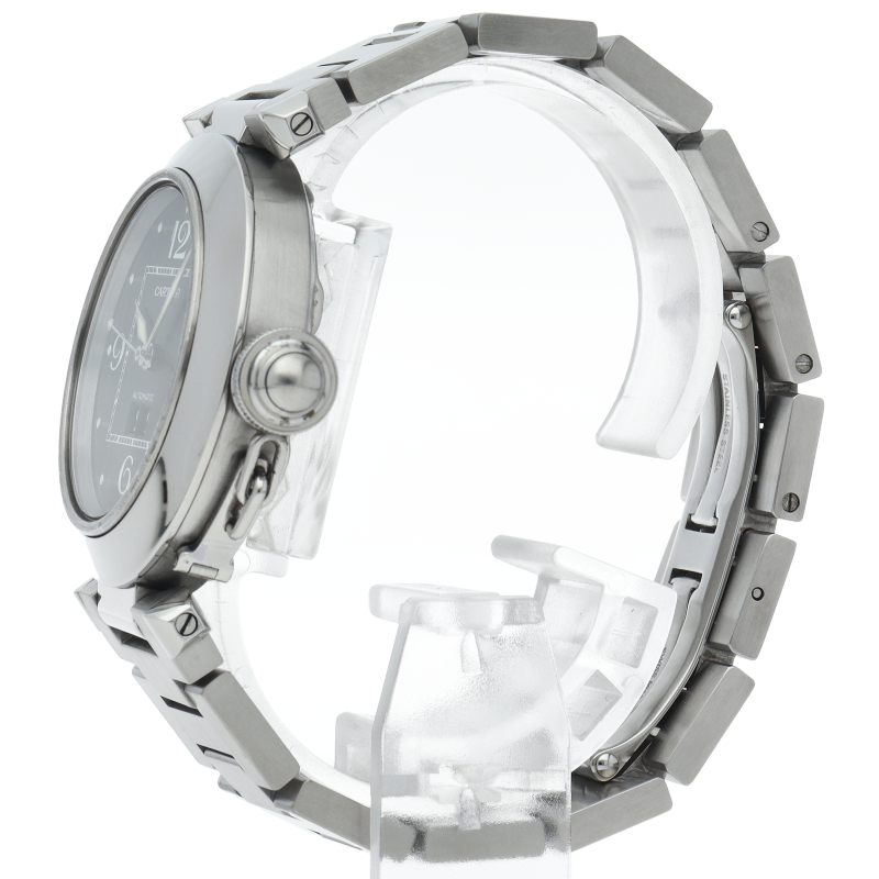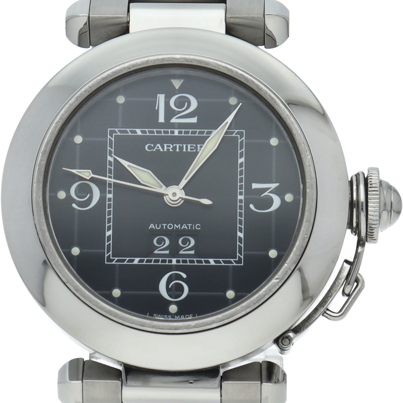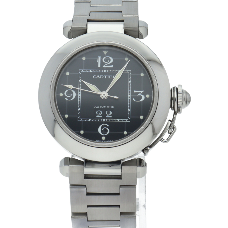 カルティエの人気「パシャC」シリーズ。大きい日付表示が特徴的なビッグデイト。視認性も良くどんなシーンにも活用できるラウンドケースがオシャレな1本。