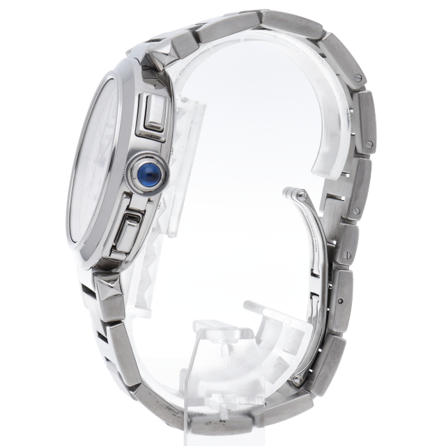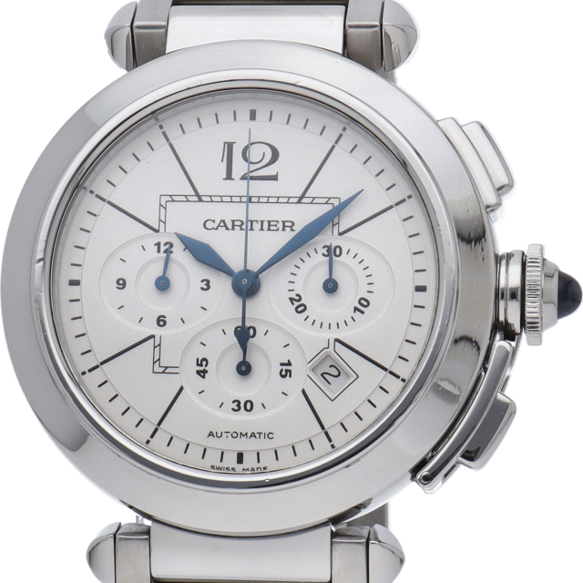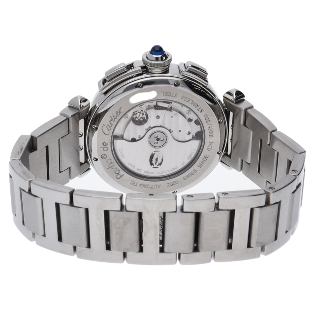 カルティエウォッチの中で「タンクフランセーズ」と人気を二分する「パシャ コレクション」。 42mmのビッグケースを採用したこちらのモデルは、同シリーズの中でも圧倒的な存在感を放ちます。ムーブメントにはマニュファクチュールブランドのジャガールクルト製を搭載し、その美しい動きをシースルーバックからご覧いただけます。