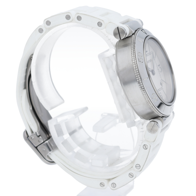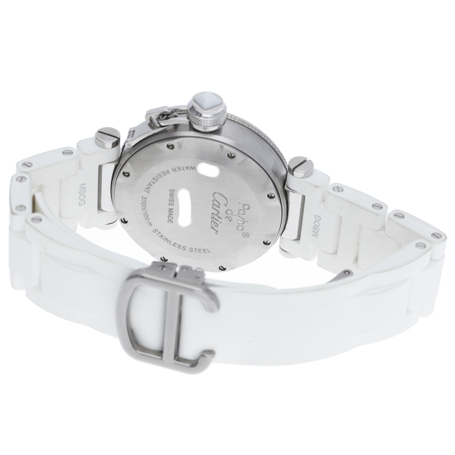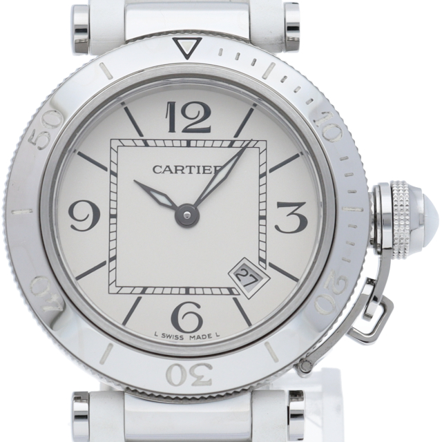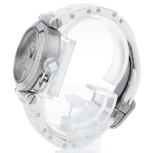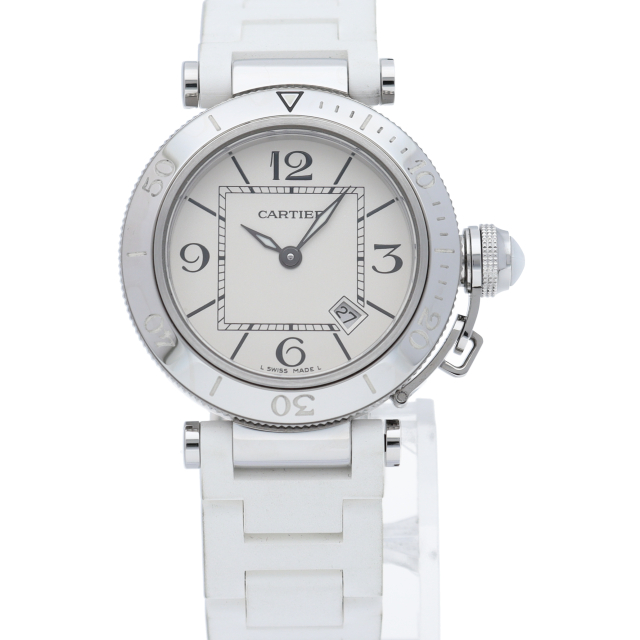 カルティエの人気シリーズ「パシャ」を上品なダイバーズ・ウォッチに仕上げた「シータイマー」。女性向きにラバーを使用してかわいらしく上品な雰囲気を演出しています。