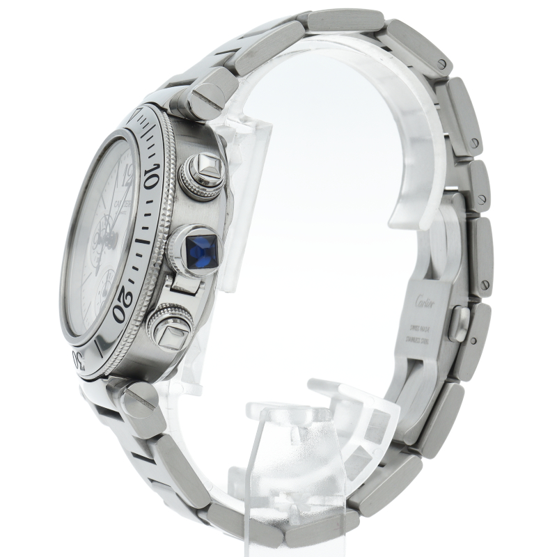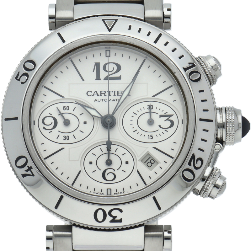 カルティエの人気シリーズ「パシャ」を上品なダイバーズ・ウォッチに仕上げた「シータイマー」。パシャシリーズ最大のケースサイズを誇るスポーツウォッチでクロノグラフ機能が搭載された高級感溢れる1本。