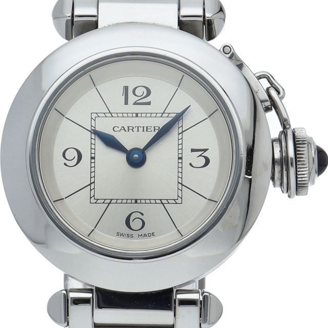 カルティエの人気「パシャ」シリーズの小振りで女性にオススメのモデル、ミスパシャ。可愛らしいデザインでシンプルにまとまったスタイルを選ばない1本。
