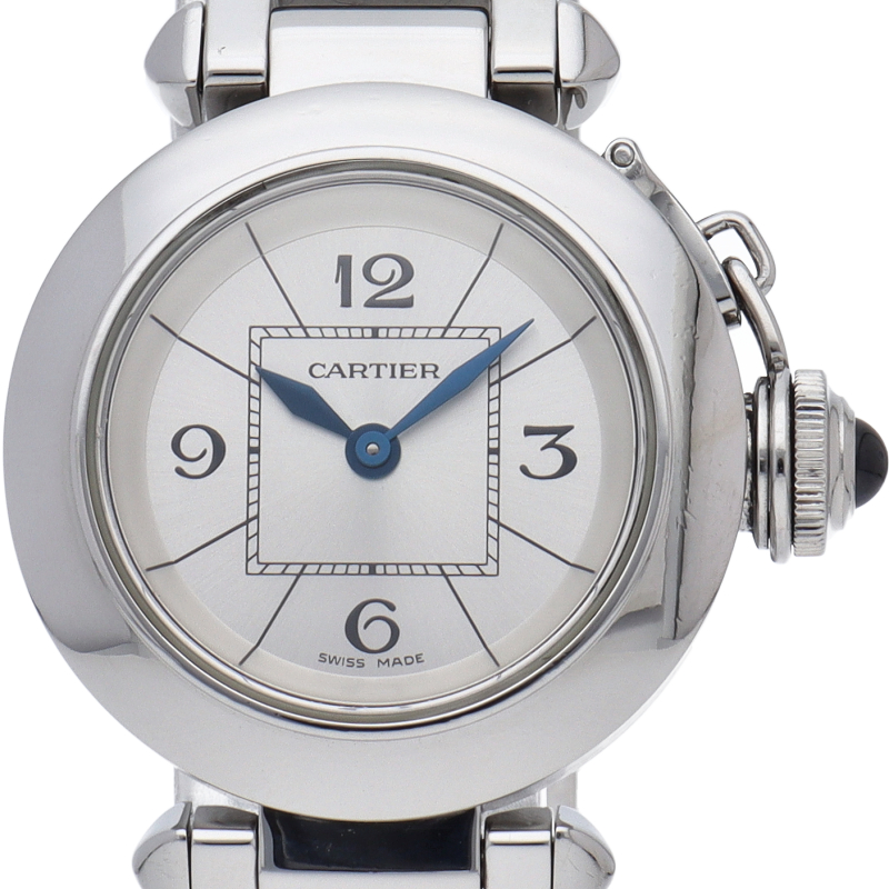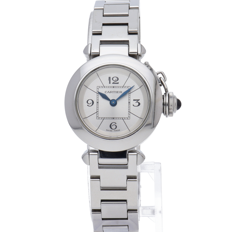 カルティエの人気「パシャ」シリーズの小振りで女性にオススメのモデル、ミスパシャ。可愛らしいデザインでシンプルにまとまったスタイルを選ばない1本。
