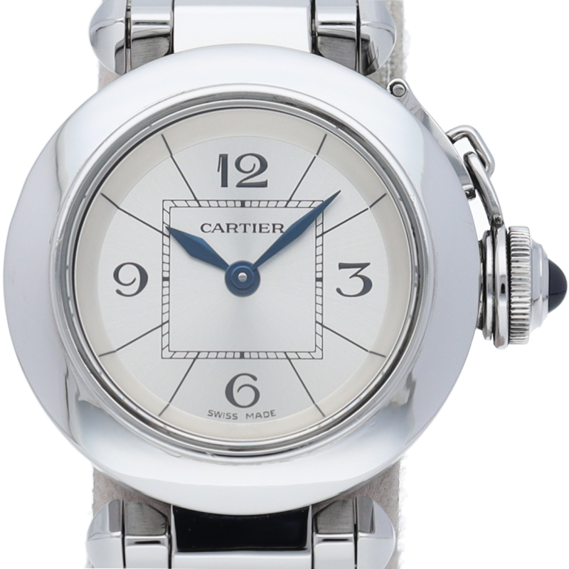 カルティエの人気「パシャ」シリーズの小振りで女性にオススメのモデル、ミスパシャ。可愛らしいデザインでシンプルにまとまったスタイルを選ばない1本。