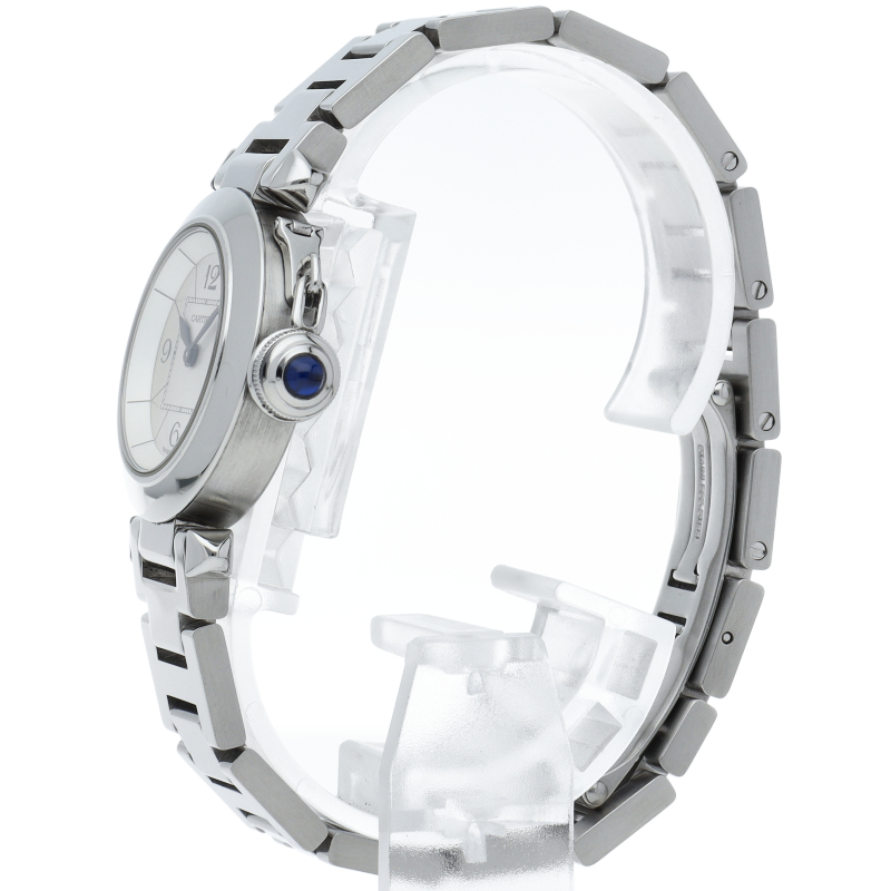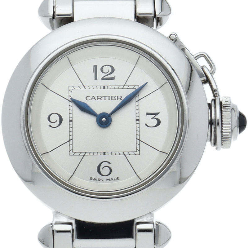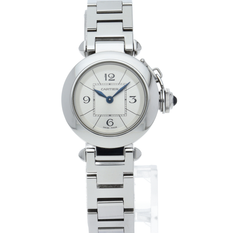 カルティエの人気「パシャ」シリーズの小振りで女性にオススメのモデル、ミスパシャ。可愛らしいデザインでシンプルにまとまったスタイルを選ばない1本。