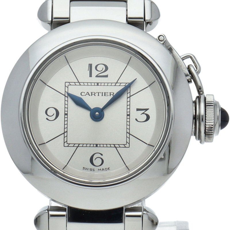 カルティエの人気「パシャ」シリーズの小振りで女性にオススメのモデル、ミスパシャ。可愛らしいデザインでシンプルにまとまったスタイルを選ばない1本。
