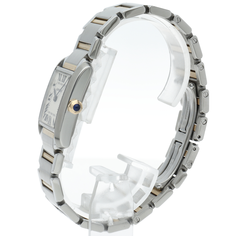カルティエの言わずと知れた人気シリーズ「タンクフランセーズ」。イエローゴールドとのコンビ仕様でシンプルかつ高級感も兼ね備えた上品な1本です。