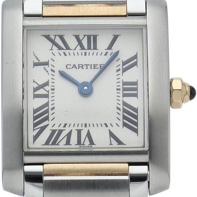 カルティエの言わずと知れた人気シリーズ「タンクフランセーズ」。イエローゴールドとのコンビ仕様でシンプルかつ高級感も兼ね備えた上品な1本です。レディースサイズ。