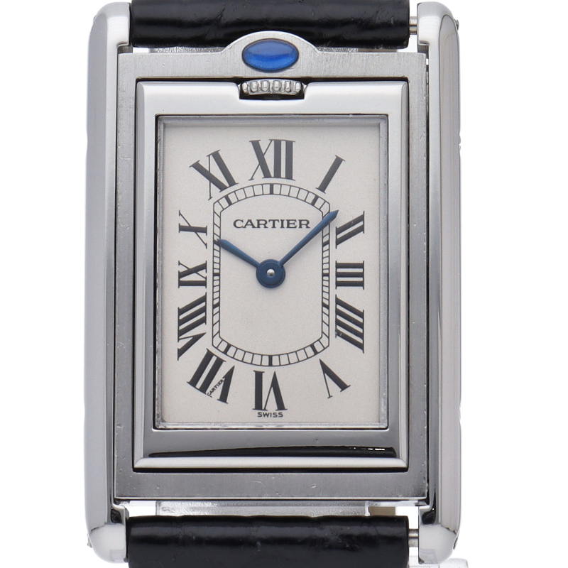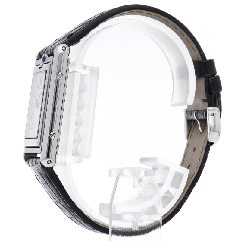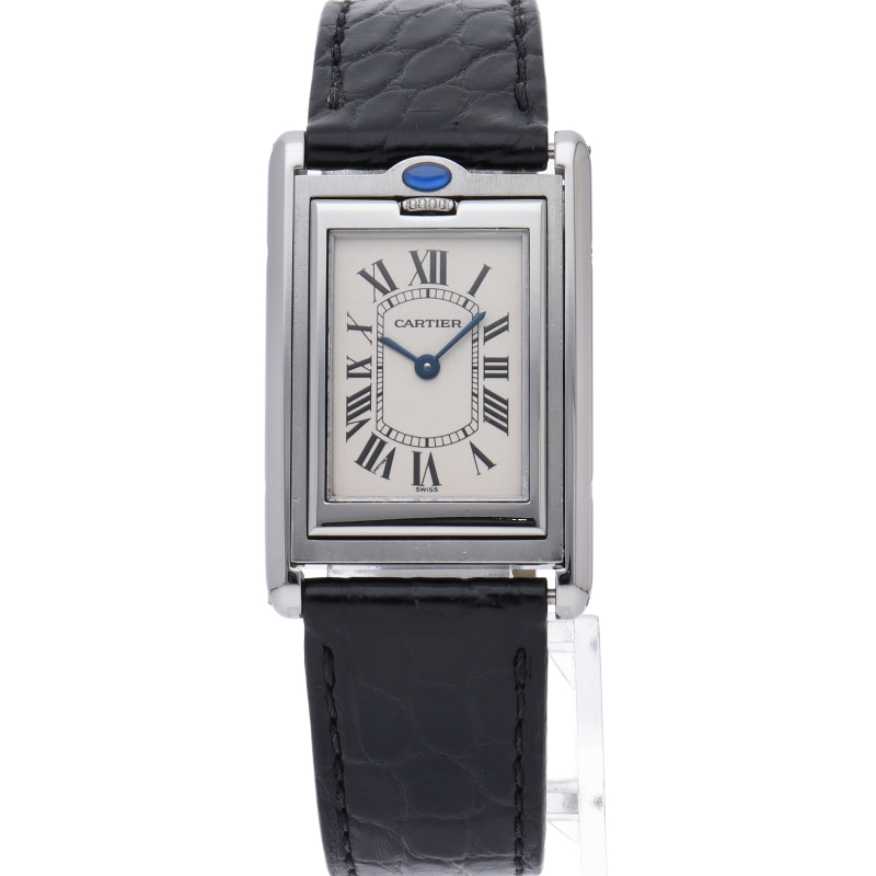 バスキュラントとはフランス語で傾く、ひっくり返すなどの意味を持ちます。その名の通り文字盤を衝撃から保護する目的で時計ごと反転させる構造になっています。時計を裏返しにするとアクセサリー感覚で使い分け出来るのも楽しみの一つです。