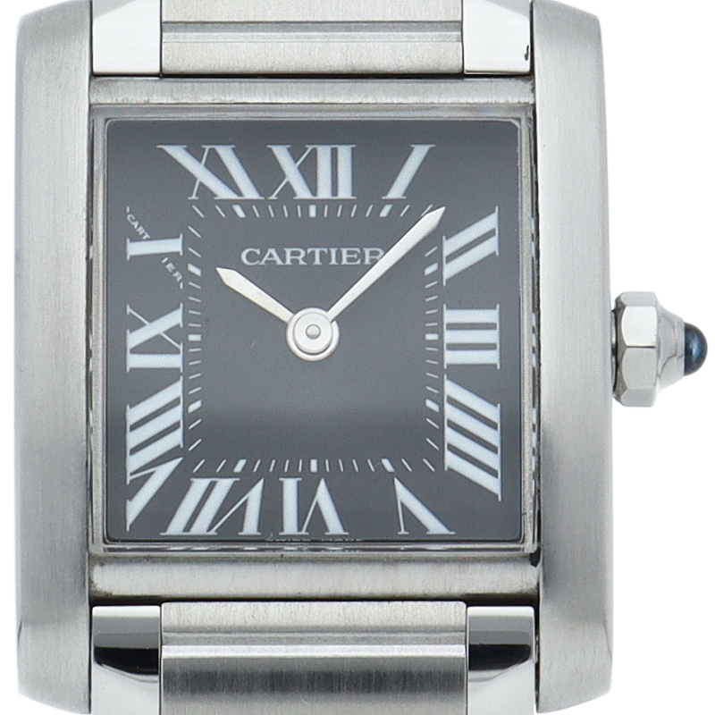 カルティエの言わずと知れた人気シリーズ「タンクフランセーズ」。シンプルでオーソドックなデザインとスタイルを選ばず着けられる気軽さが人気です。アジア限定モデルの希少な黒文字盤です。