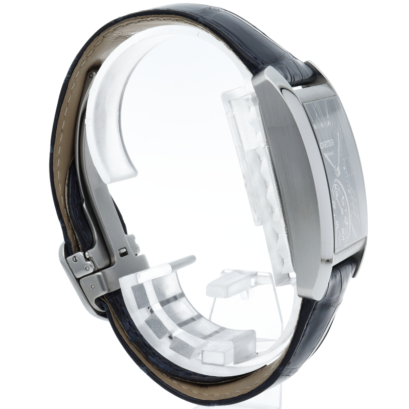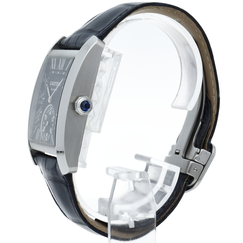 タンクMCは戦車をモチーフにしたタンクのデザインコードはそのままに、より男性的な魅力が感じられるモデル。手元にほどよいボリューム感を見せつつも非常に快適な装着感です。リューズにはブルースピネルを装飾するなどカルティエらしいエレガントな意匠もさりげなく。ビジネススタイルにも格好よく映えて、洗練された印象を広げます。
