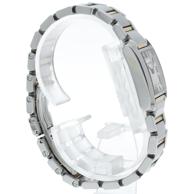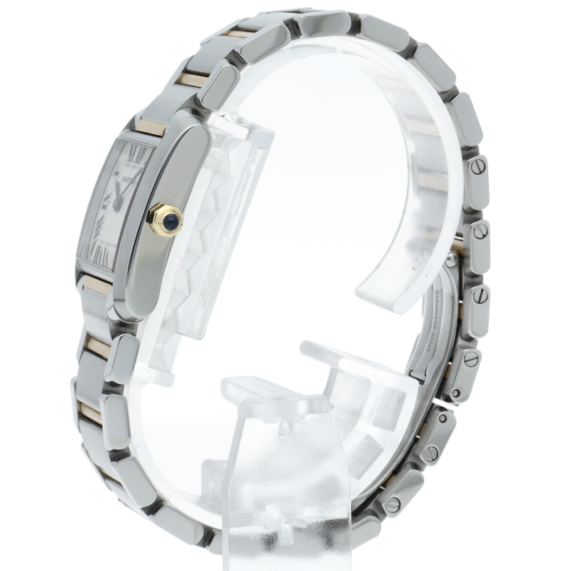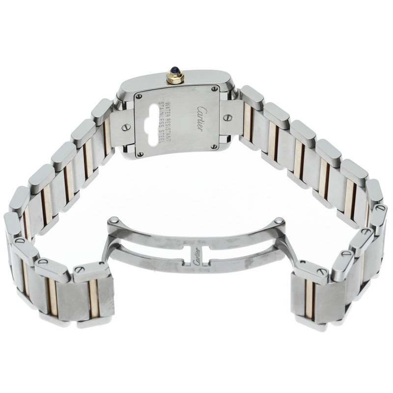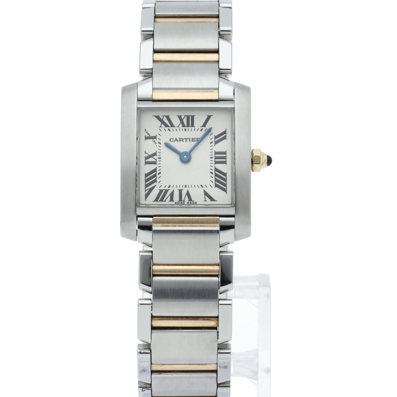 カルティエの言わずと知れた人気シリーズ「タンクフランセーズ」。イエローゴールドとのコンビ仕様でシンプルかつ高級感も兼ね備えた上品な1本です。レディースサイズ。