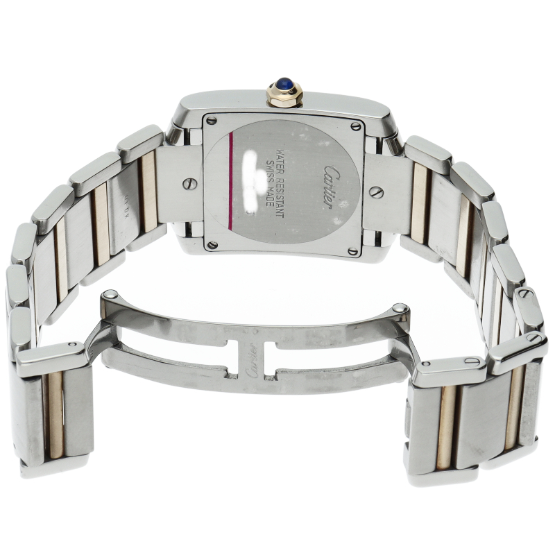 カルティエの言わずと知れた人気シリーズ「タンクフランセーズ」。イエローゴールドとのコンビ仕様でシンプルかつ高級感も兼ね備えた上品な1本です。