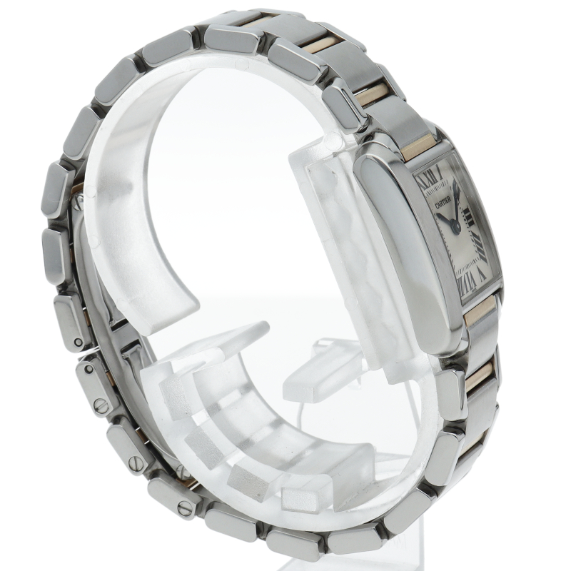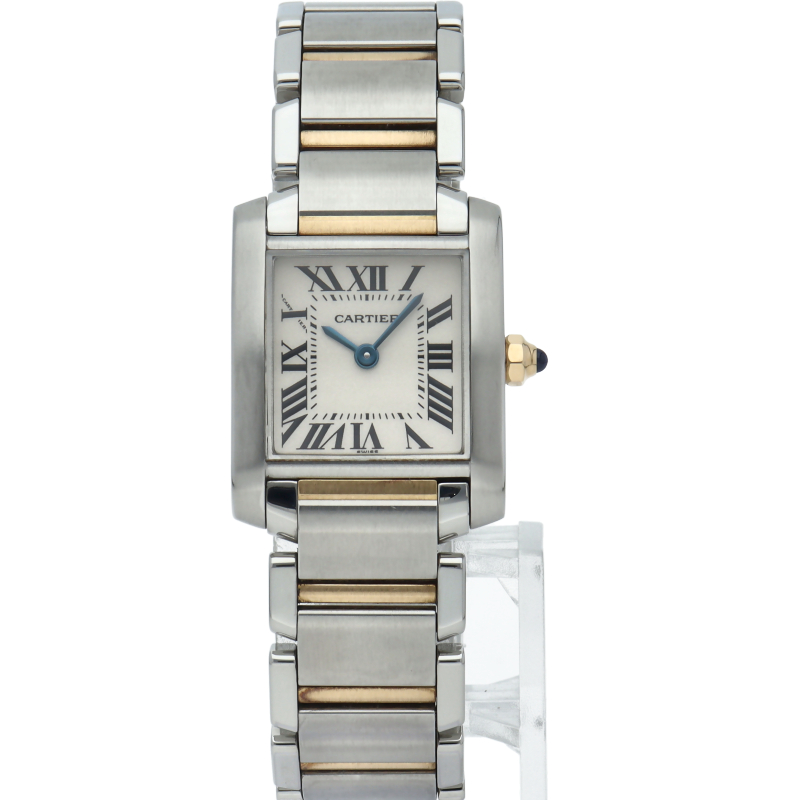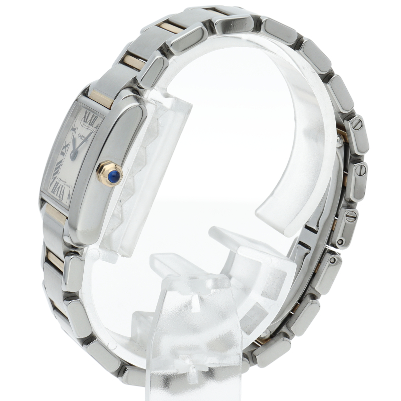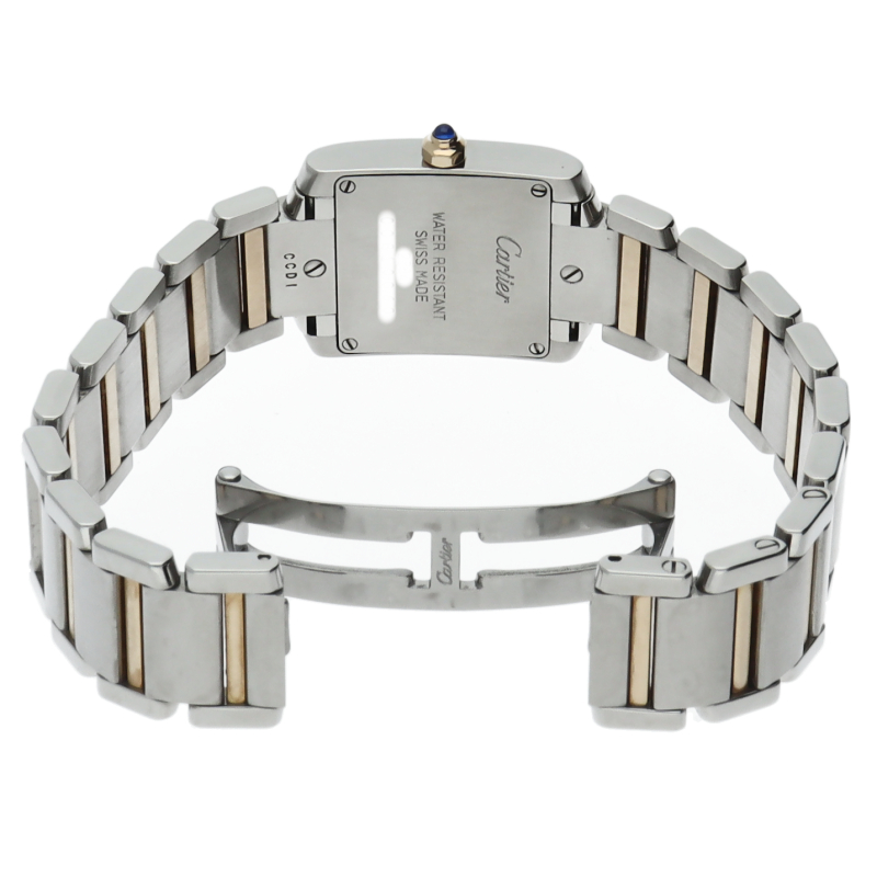 カルティエの言わずと知れた人気シリーズ「タンクフランセーズ」。イエローゴールドとのコンビ仕様でシンプルかつ高級感も兼ね備えた上品な1本です。レディースサイズ。