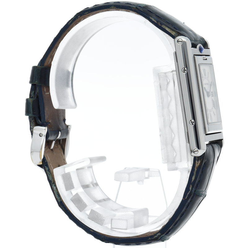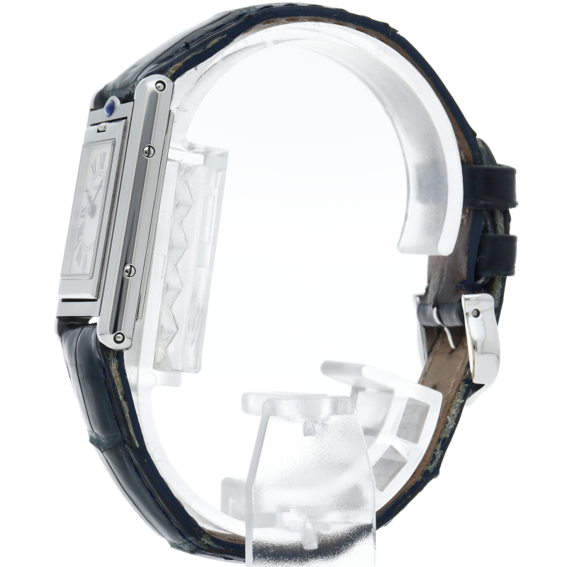 バスキュラントとはフランス語で傾く、ひっくり返すなどの意味を持ちます。その名の通り文字盤を衝撃から保護する目的で時計ごと反転させる構造になっています。時計を裏返しにするとアクセサリー感覚で使い分け出来るのも楽しみの一つです。