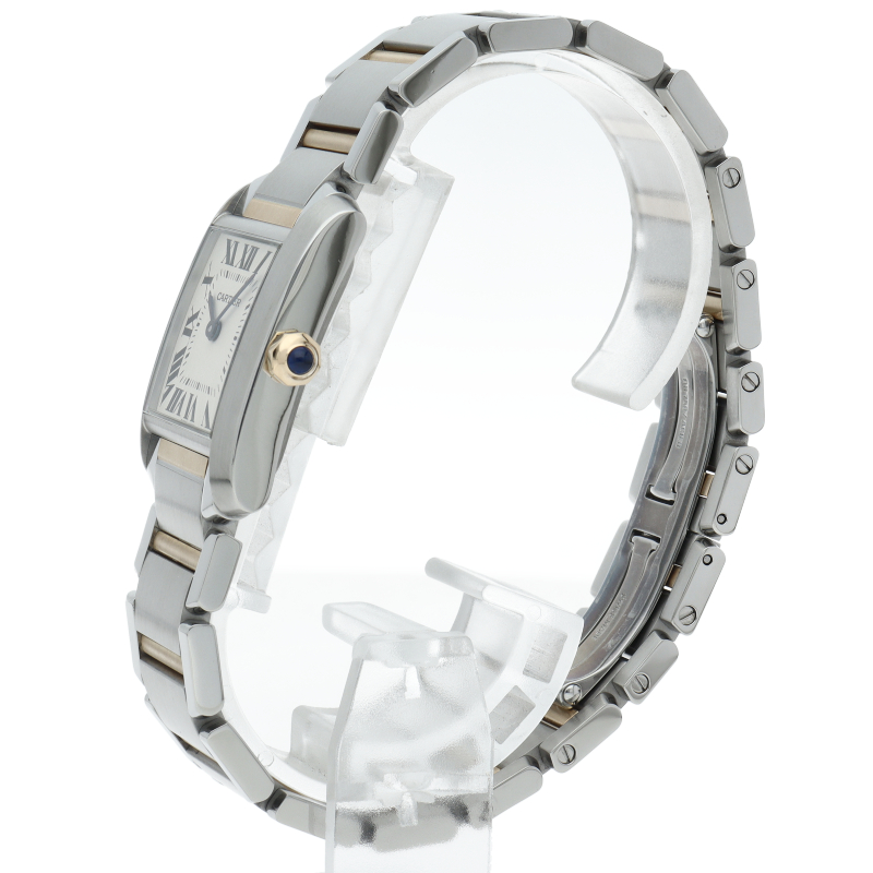 カルティエの言わずと知れた人気シリーズ「タンクフランセーズ」。イエローゴールドとのコンビ仕様でシンプルかつ高級感も兼ね備えた上品な1本です。