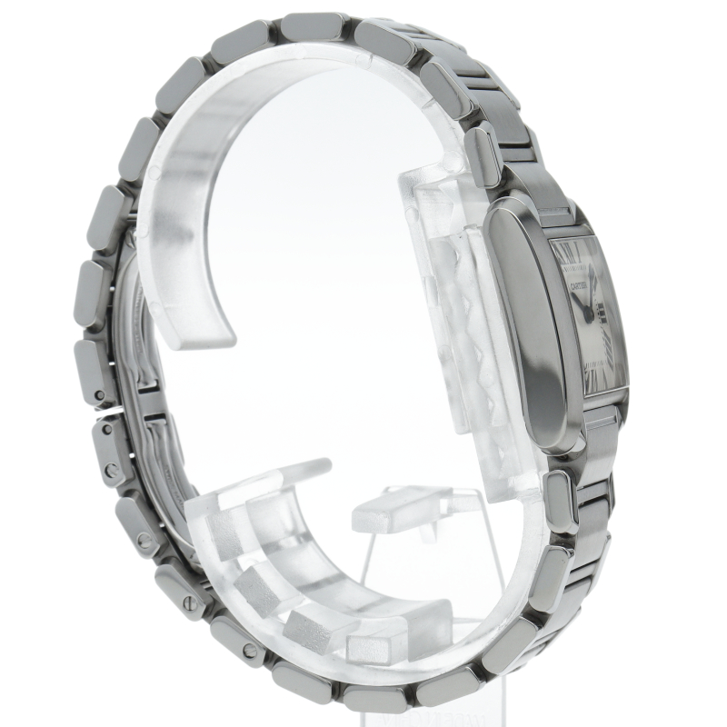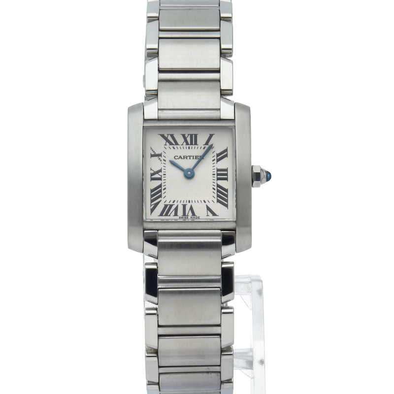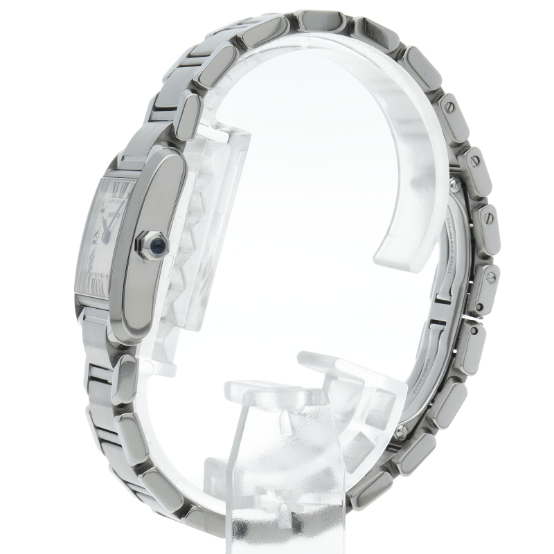 洗練されたケースやブレスレットのデザインはある時はフェミニンに、ある時はクールにと様々な表情で女性の手元を演出します。 針はブルースチールを使用しているため、光の加減で綺麗な青に見えるときや濃紺に見えることもあります。