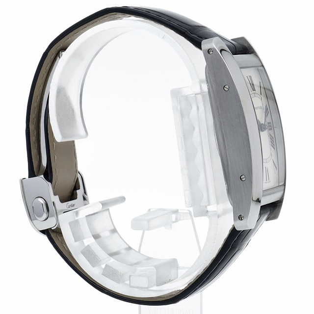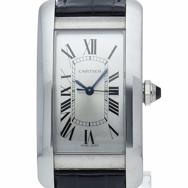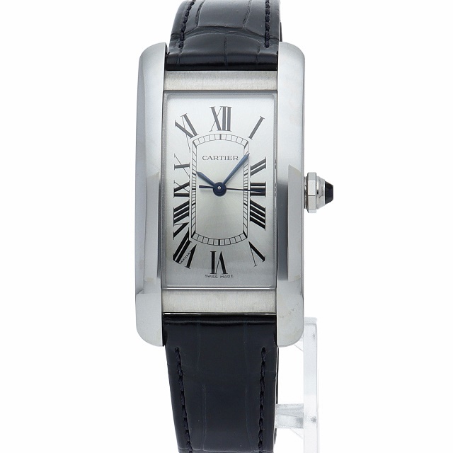 カルティエの看板モデル、タンクフランセーズと比較すると、縦長にアレンジされたケースデザインが特徴のタンクアメリカン。ピンクゴールド製のケース・ブレスを使用しただけでなく、ケース上に2列ずつ贅沢にダイヤモンドセッティングがなされており、名門ジュエラーならでは卓越した加工技術を感じさせてくれます。