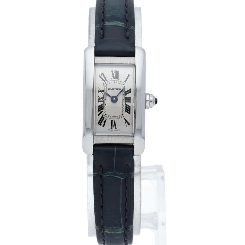 日常生活でも使いやすいモデルとして人気の高いタンクシリーズ。縦長のケースが特徴的な「タンク アメリカン」のミニサイズで、女性の腕にさりげなくフィットします。