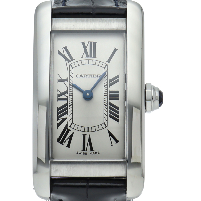 日常生活でも使いやすいモデルとして人気の高いタンクシリーズ。その中でも縦長のシルエットがスタイリッシュなコーディネートを生み出してくれるのが、こちらのタンクアメリカン。これまではゴールドマテリアルのモデルしか存在しませんでしたが、こちらはステンレススティールを採用しています。女性の手首に最適なSMサイズに、シンプルな革ベルトはクラシカルにも、今旬のスタイルにも合わせやすいのでおすすめです。