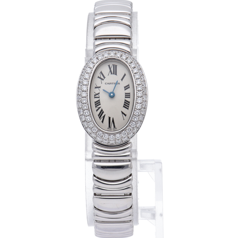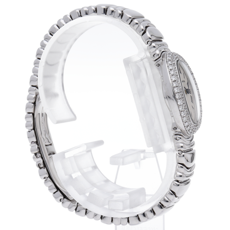 楕円の滑らかな曲線が女性らしさを演出する「ミニベニュワール」。現在では新たにモデルチェンジをしましたが、柔らかな印象のこのモデルは、また違った魅力があります。ベゼルに施されたダイヤモンドが高級感溢れる1本です。