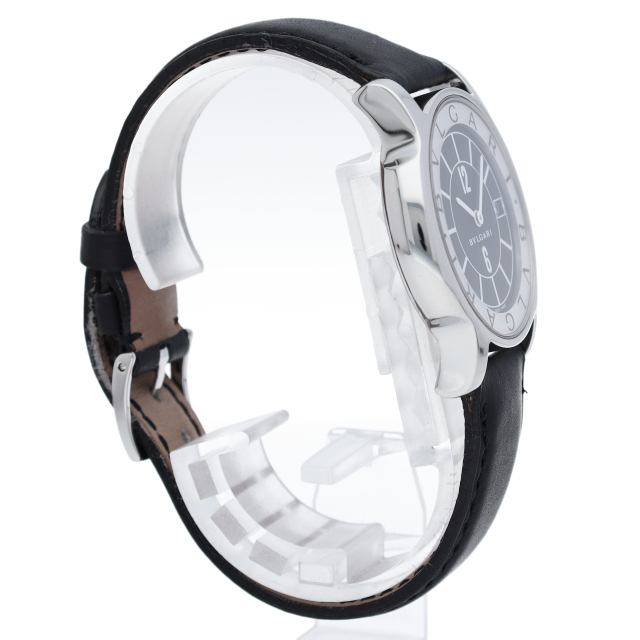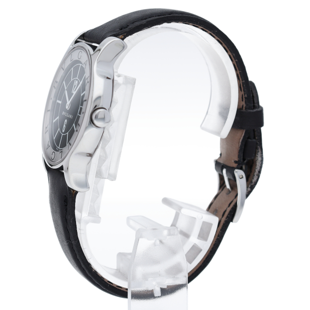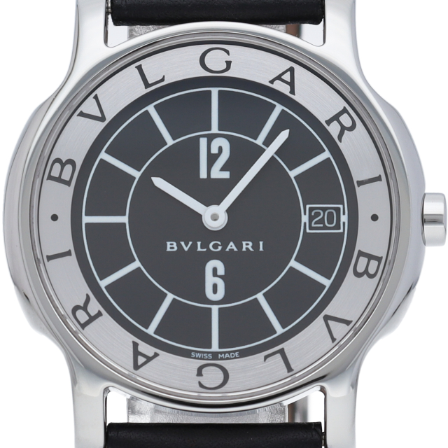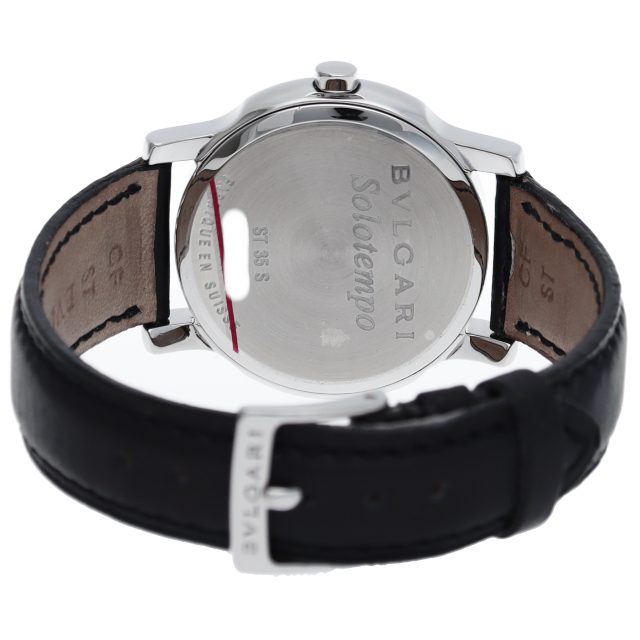 ブルガリの人気ロングセラー商品で「ソロテンポ」。シンプルなデザインでスタイルを選ばずに使用できるのが特徴的です。便利なデイト機能付。ST35S(ST35BSLD)
