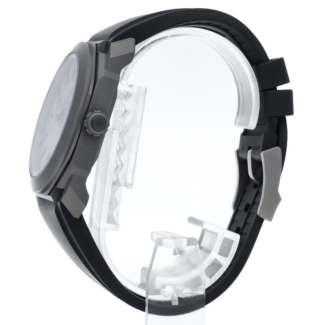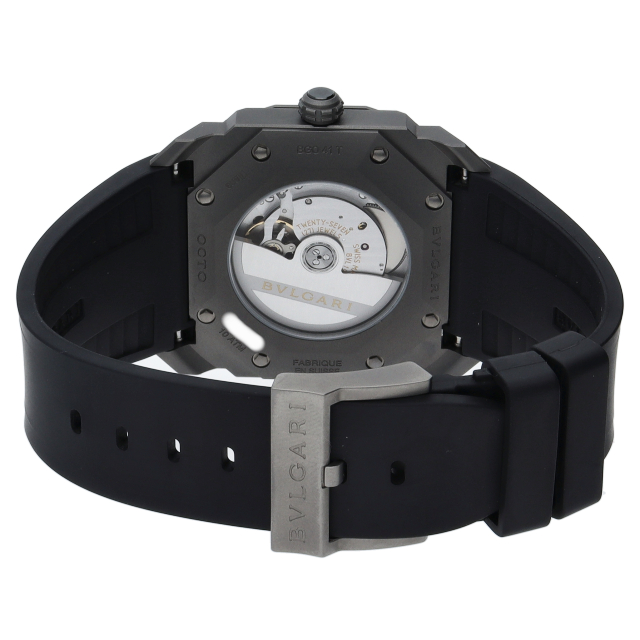 ローマのマクセンティウスのバシカからインスピレーションを得た特徴的な八角形のフォルムに手作業でポリッシュ仕上げとラッカー仕上げを施した文字盤。現代的な素材の強靭さと構造的な外観が力強い印象を与えます。