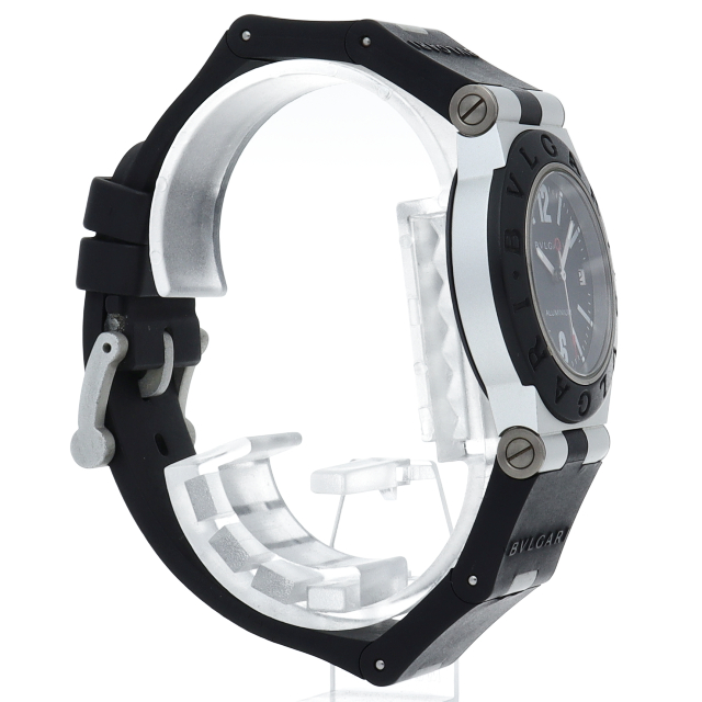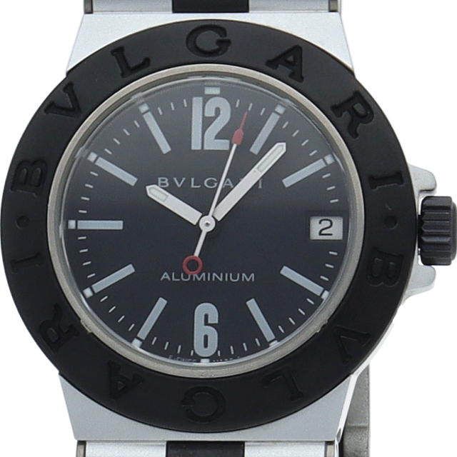 ブルガリの人気シリーズでスポーティーな「アルミニウム」。異素材であるアルミニウムとラバーをうまく組み合わせた個性的でブルガリらしい革新的な1本。AL32TA(AL32TAVD)。