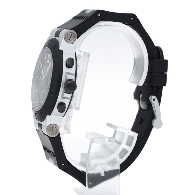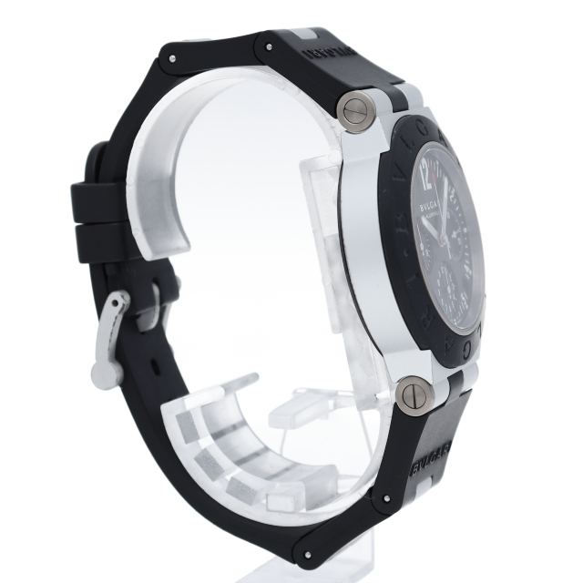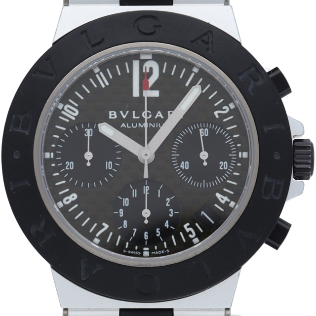 ブルガリの人気シリーズでスポーティーな「アルミニウム」。異素材であるアルミニウムとラバーをうまく組み合わせた個性的でブルガリらしい革新的な1本。AC38TA(AC38BTAVD)