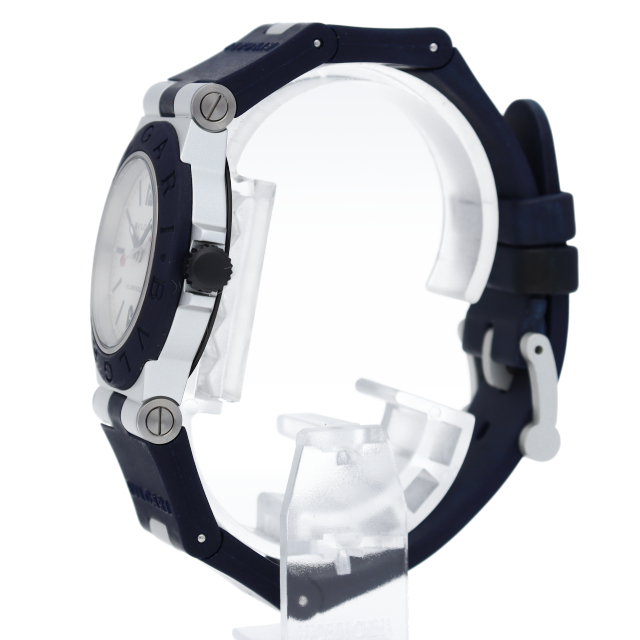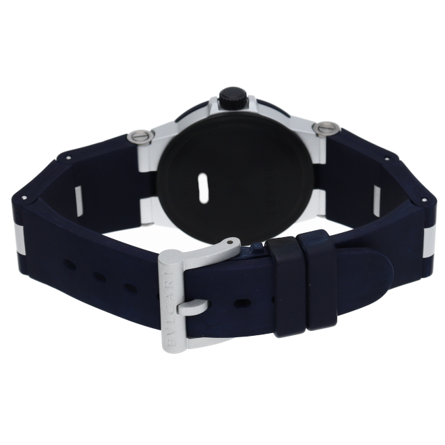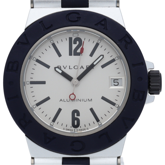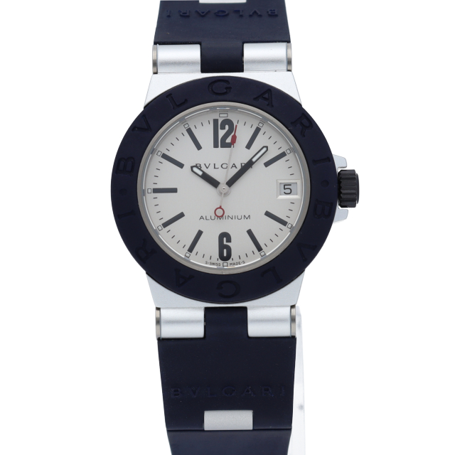 ブルガリの人気シリーズでスポーティーな「アルミニウム」。異素材であるアルミニウムとラバーをうまく組み合わせた個性的でブルガリらしい革新的な1本。