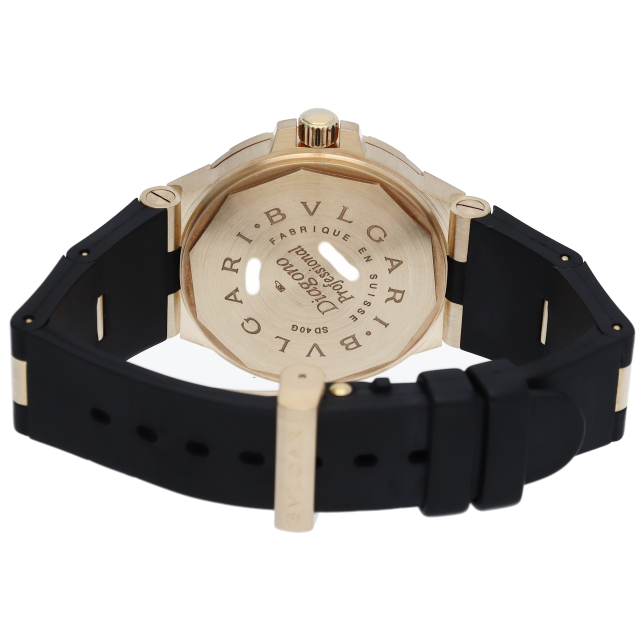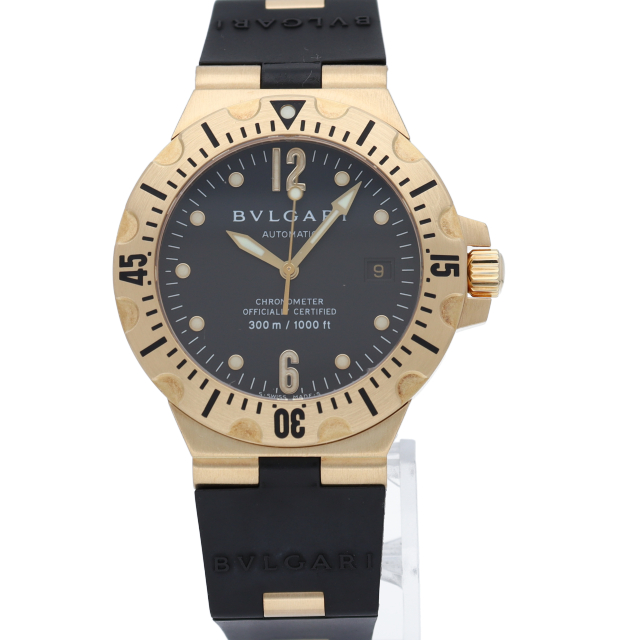 ブルガリからケースがイエローゴールドでゴージャスながらスポーティーな印象の『ディアゴノスクーバ』です。ブルガリの機能性と耐久性という時計の本質に対する実力を感じさせる人気の高いシリーズです。SD40G(SD40GVD)