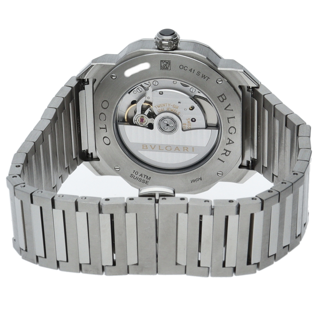 ローマのマクセンティウスのバシカからインスピレーションを得た特徴的な八角形のフォルムに手作業でポリッシュ仕上げとラッカー仕上げを施した文字盤。更には手作業でインデックスを植字されているデザイン性に富んだモデルです。OC41SWT(103481)