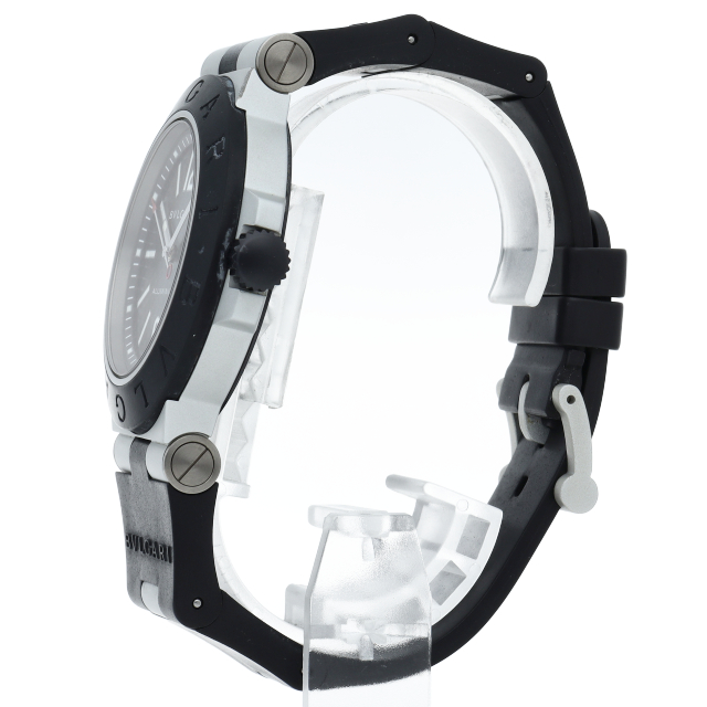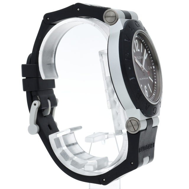 ブルガリの人気シリーズでスポーティーな「アルミニウム」。異素材であるアルミニウムとラバーをうまく組み合わせた個性的でブルガリらしい革新的な1本。AL44TA。