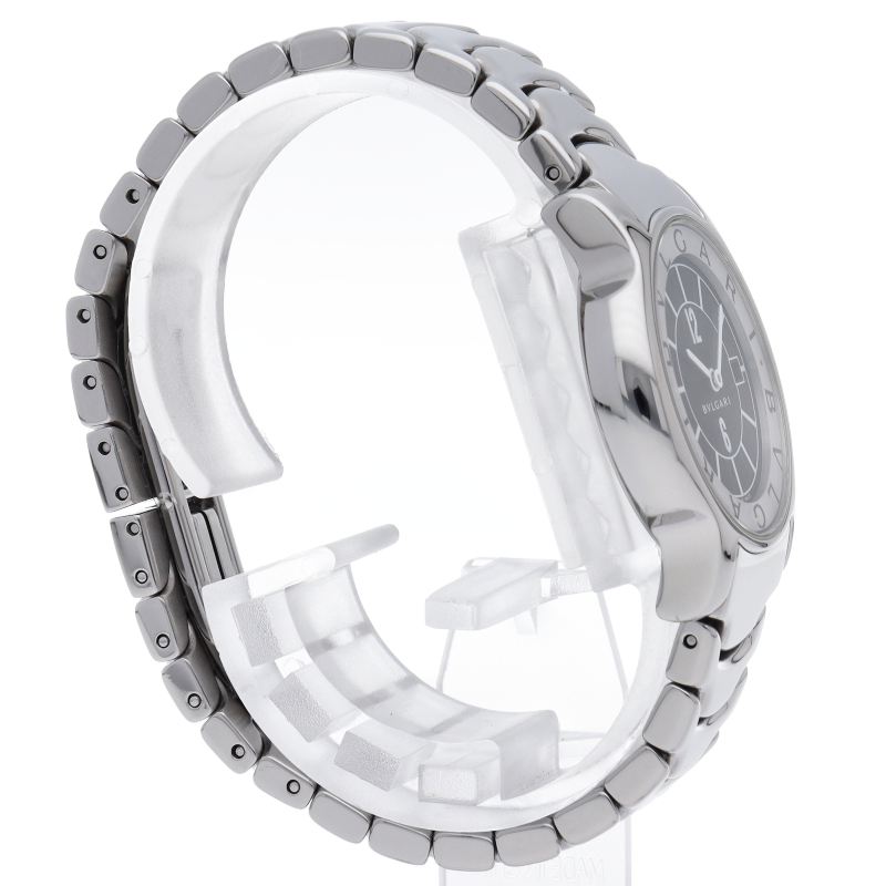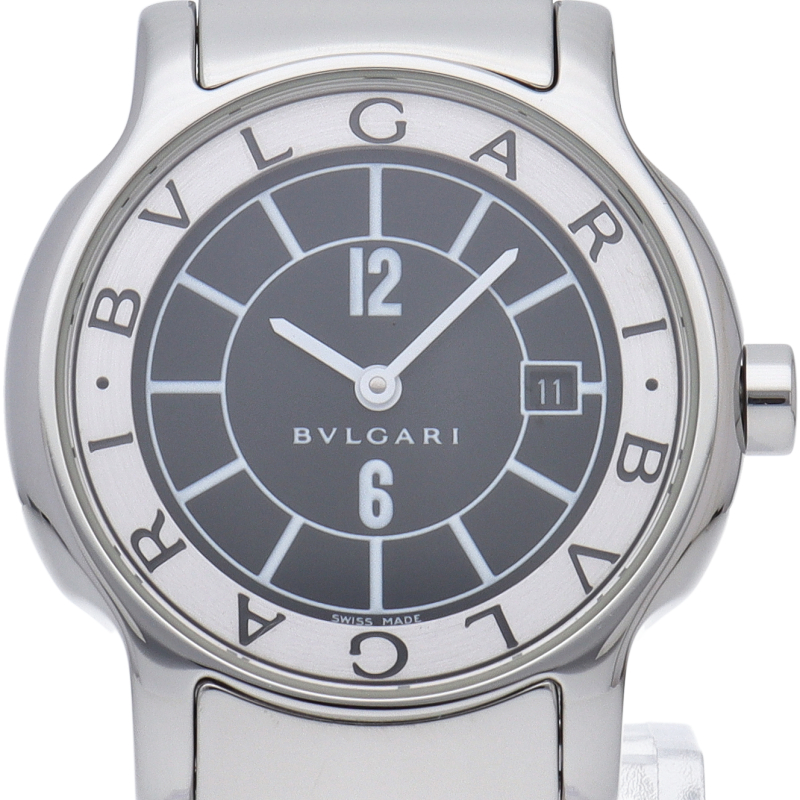 ブルガリの人気ロングセラー商品で「ソロテンポ」。シンプルなデザインでスタイルを選ばずに使用できるのが特徴的です。便利なデイト機能付。ST29S/ST29BSSD