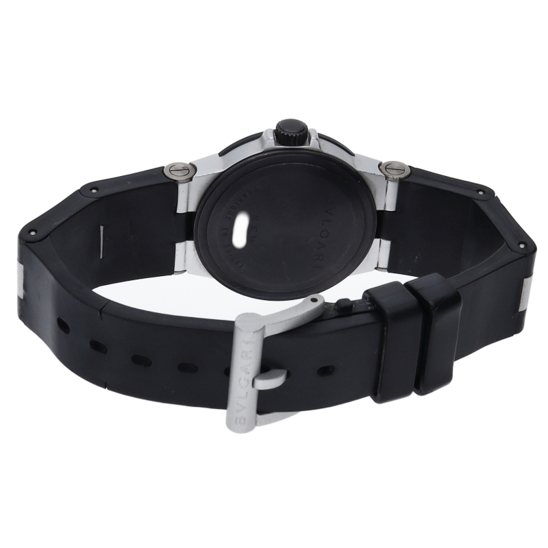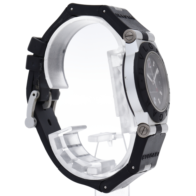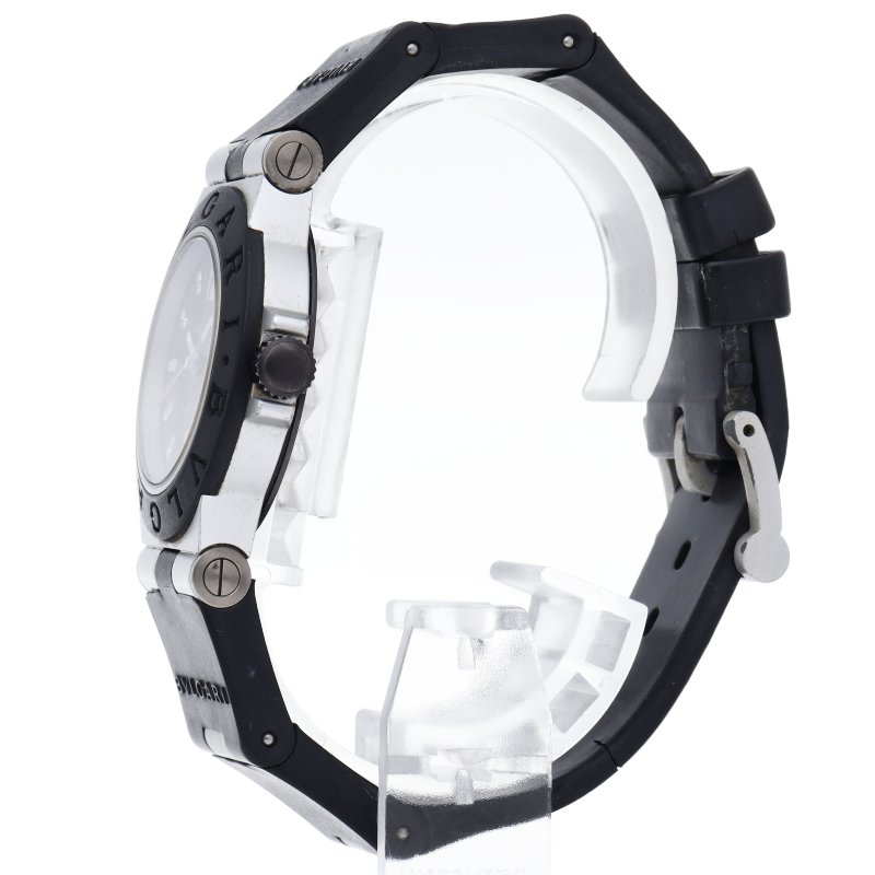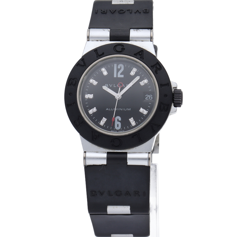 ブルガリの人気シリーズでスポーティーな「アルミニウム」。異素材であるアルミニウムとラバーをうまく組み合わせた個性的でブルガリらしい革新的な1本。インデックスにはさり気なくダイヤがあしらわれた豪華な逸品です。AL32TA/18P